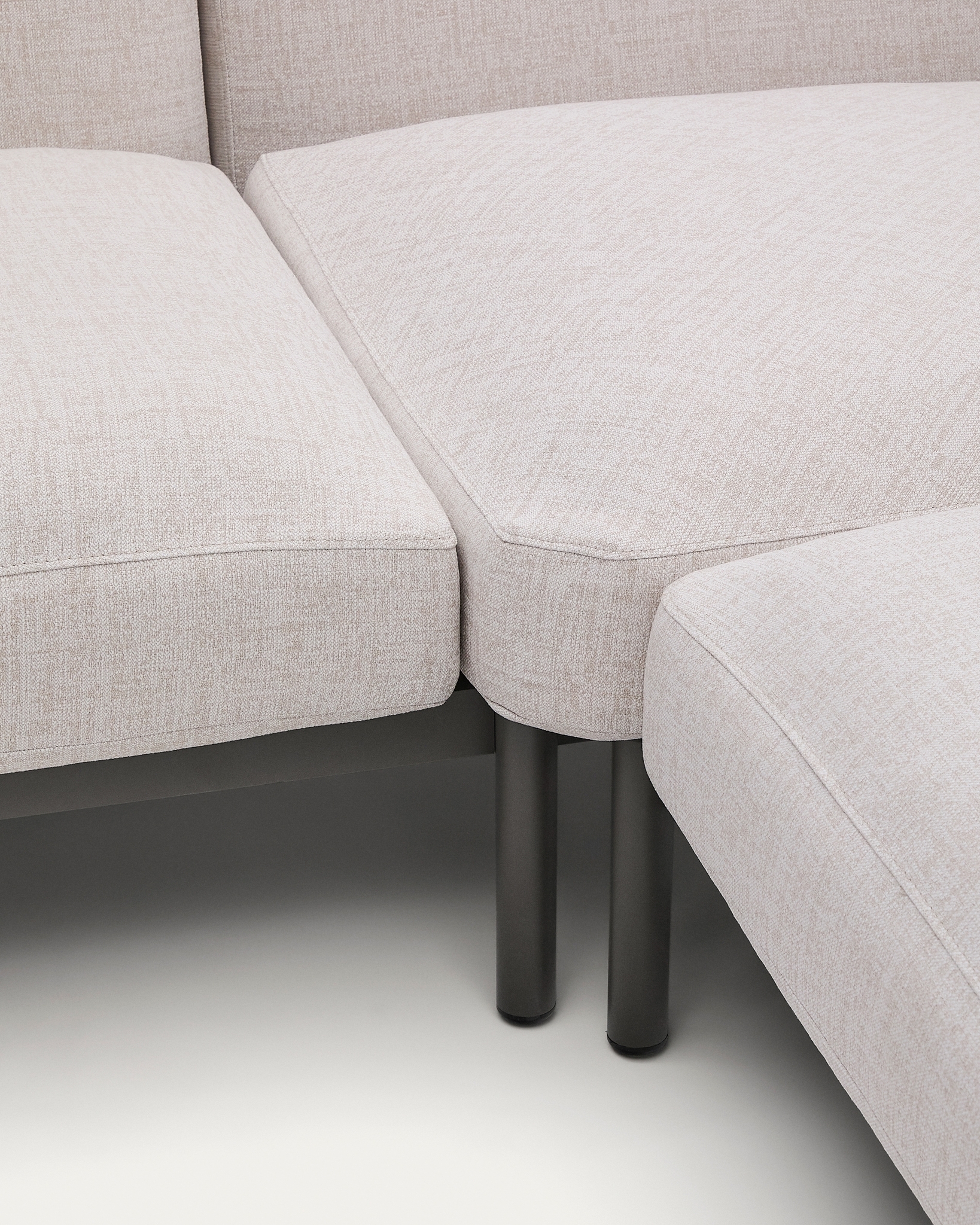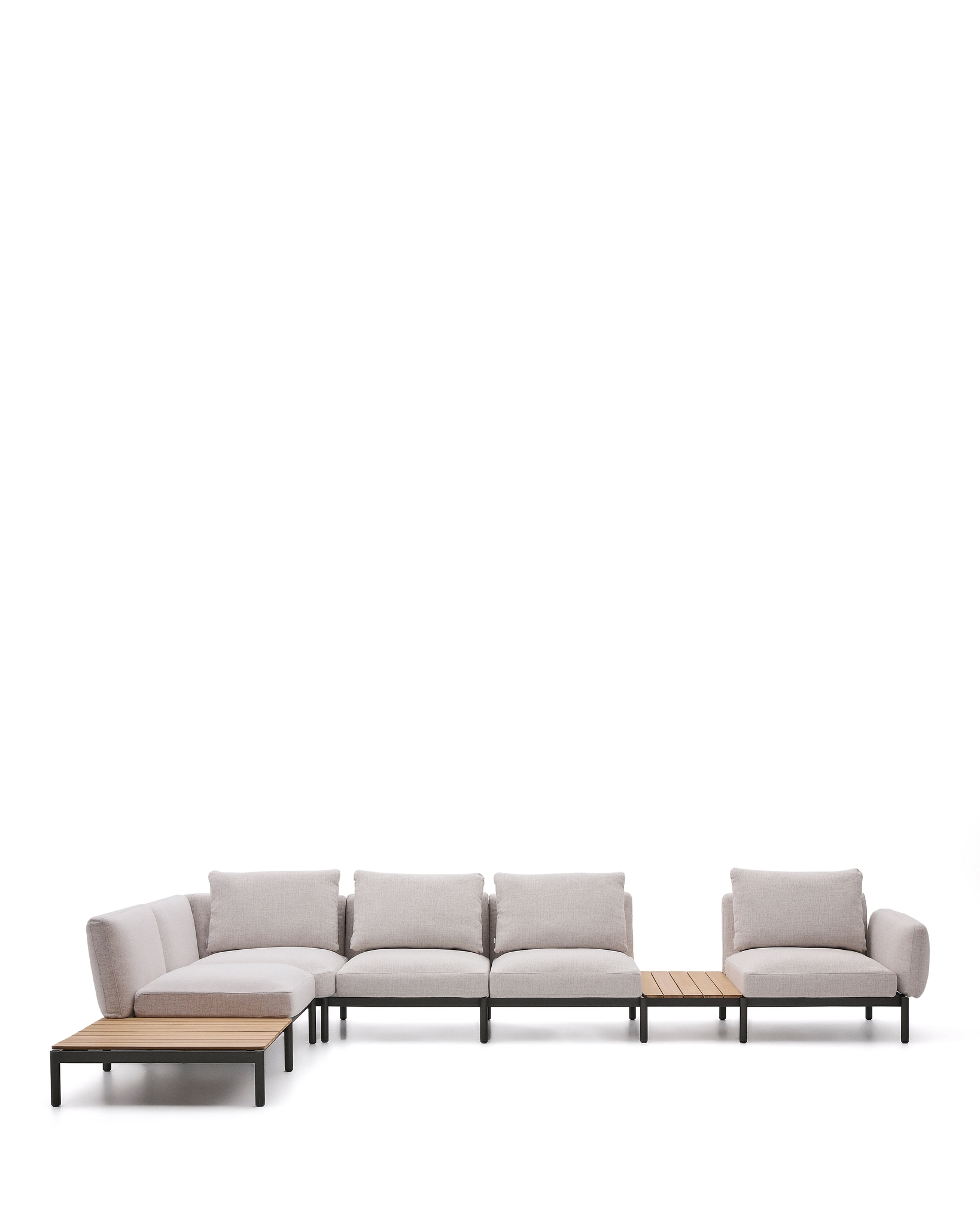 Sorells — это гораздо больше, чем просто модульный диван, это ключевой элемент для преобразования вашего пространства на открытом воздухе с аутентичным стилем и комфортом. Разработанный эксклюзивно Made Studio для Kave Home, Sorells сочетает в себе универсальность модульной конструкции с прочностью высококачественных материалов. Его алюминиевая структура, которая легкая и устойчива к ржавчине, коррозии и ультрафиолетовому излучению, обеспечивает исключительную долговечность на открытом воздухе. К этому добавляется бежевая обивка, призванная добавить изысканности и тепла любому.