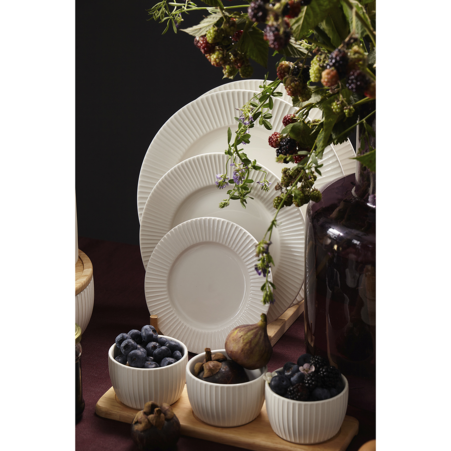 Простая и лаконичная коллекция Soft Ripples Dual Glazing не оставит равнодушными поклонников минимализма и качественной посуды. Тарелки из коллекции Soft Ripples Dual Glazing великолепно впишутся как в повседневную, так и праздничную сервировку стола. Посуда из благородного фарфора с двойной глазуровкой имеет презентабельный вид и отличные эксплуатационные характеристики. Материал неприхотлив в уходе, не впитывает загрязнения, является экологичным и безопасным для здоровья. Рельефный узор делает дизайн оригинальным. Чистое сырье высочайшего качества и собственная формула глазуровки с обжигом при температуре 1250 °C делают изделия из фарфора особо прочными, устойчивыми к растрескиванию и появлению сколов. Глазурь и декор не тускнеют со временем, сохраняя первоначальный цвет и блеск. Наши продукты прошли испытания на отсутствие в составе свинца и кадмия в соответствии со стандартными тестами FDA. Для создания коллекции Soft Ripples Dual Glazing дизайнеры решились на совмещение двух разных фактур – глянцевой и матовой глазури с легким блеском, чтобы придать посуде современный и при этом необычный вид. В линейке представлен большой выбор предметов для сервировки. Поверхность каждого изделия из фарфора имеет приятный рельеф, а углы деревянных элементов красиво закруглены. Сочетание элегантного дизайна и натуральных оттенков дарит эстетическое удовольствие, позволяя создавать на вашем столе настоящий праздник вкуса и стиля. Материал: фарфор. Размеры: 27х27х2,6 см. Количество в наборе: 2 шт. Цвет: белый. Допускается мытье в посудомоечной машине, использование в морозильной камере, микроволновой печи и духовке при температуре не выше 180 °C.