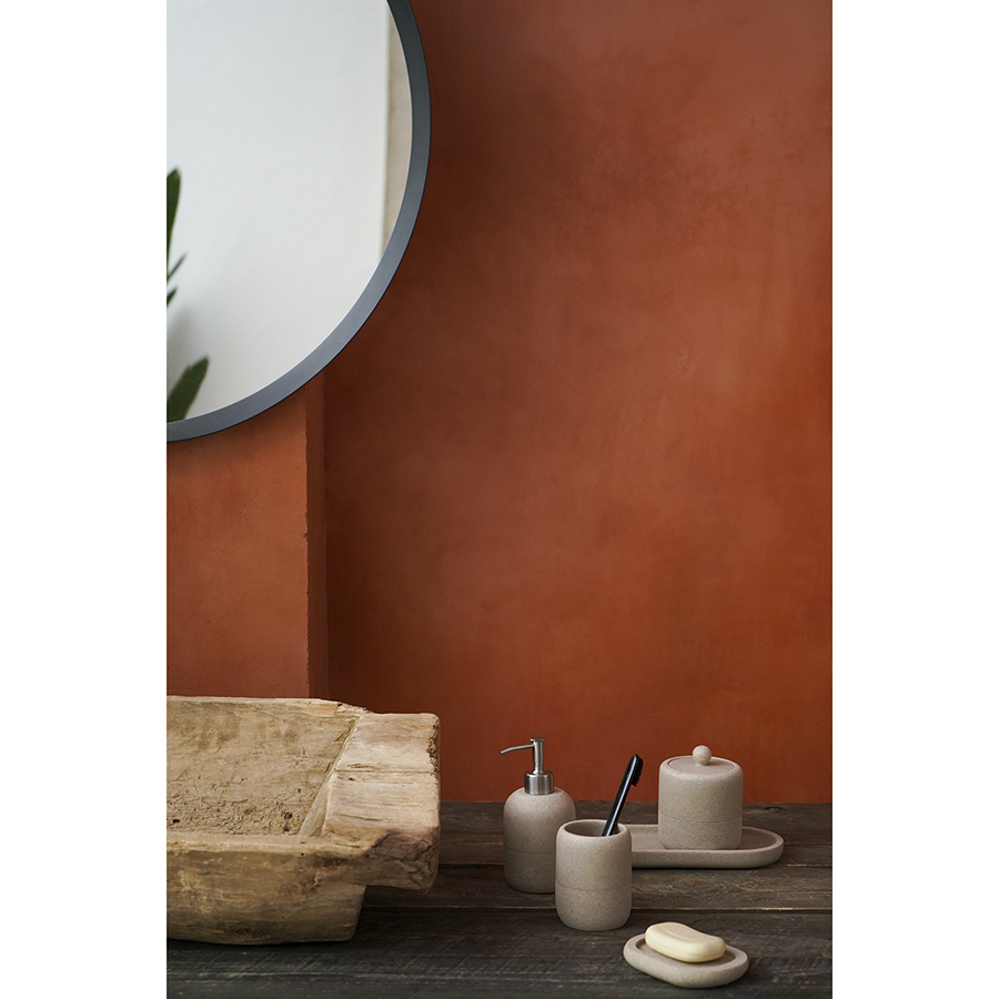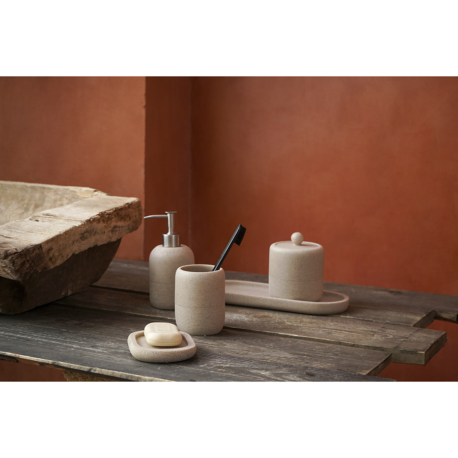 Стакан для зубных щеток Loup имеет корпус из полирезина, стилизованного под натуральный камень бежевого оттенка. Материал легко моется, отличается устойчивостью к влаге, ударам и царапинам, что делает его идеальным выбором для ванной комнаты. Емкость компактных размеров занимает минимум места на раковине или полке. Коллекция аксессуаров Loup сделает пространство вашей ванной комнаты более комфортным и функциональным. Имитация фактуры натурального камня и естественные оттенки привнесут в интерьер нотки природной элегантности. Линейка понравится поклонникам скандинавского стиля и минималистичных интерьеров, где предпочтение отдается простым формам и спокойной цветовой гамме. Материалы: полирезин. Размеры: 7,7х7,7х10,1 см. Цвет: бежевый. Стакан можно очищать в теплой воде с помощью мягких моющих средств. Запрещается использование агрессивной бытовой химии и абразивных материалов.