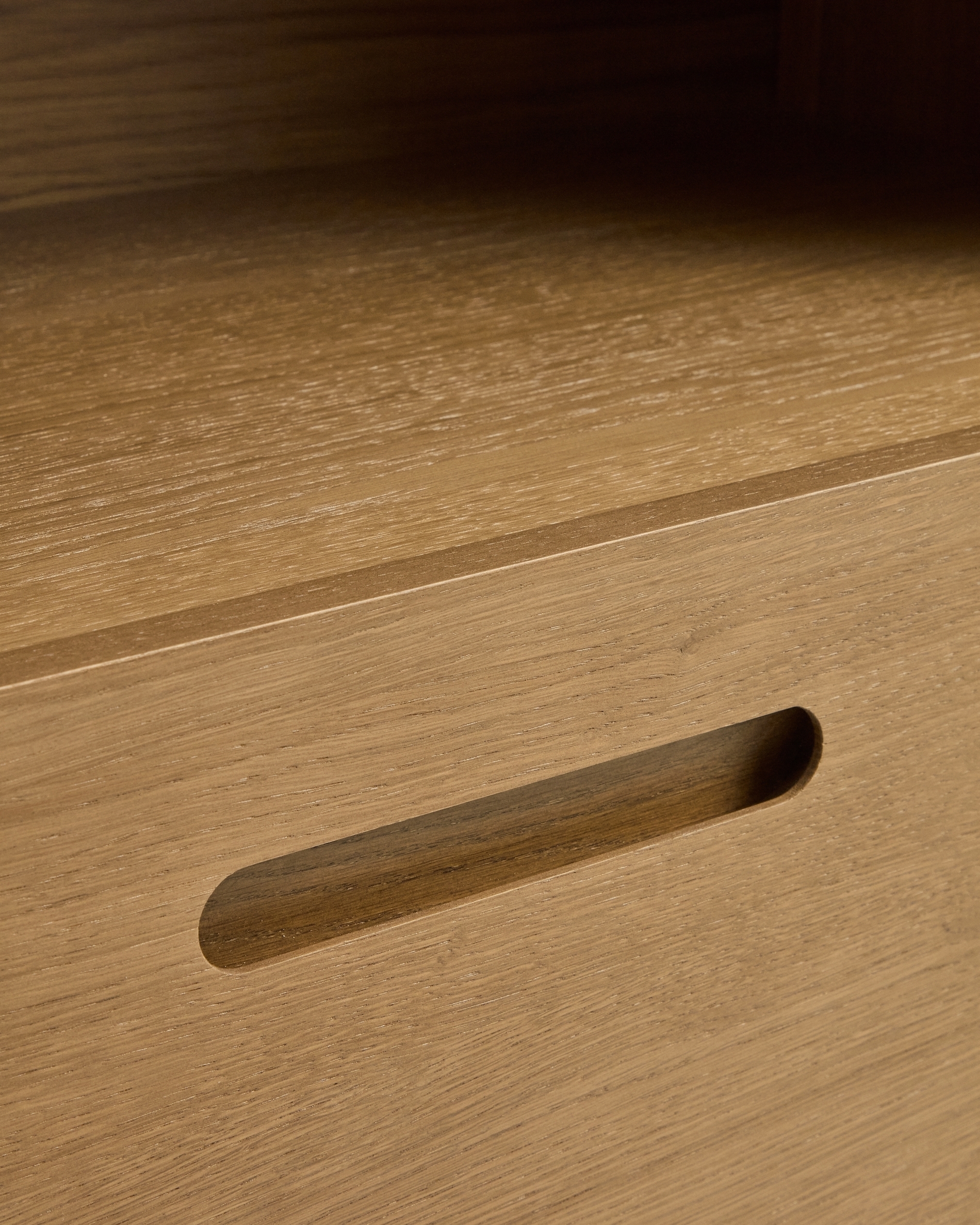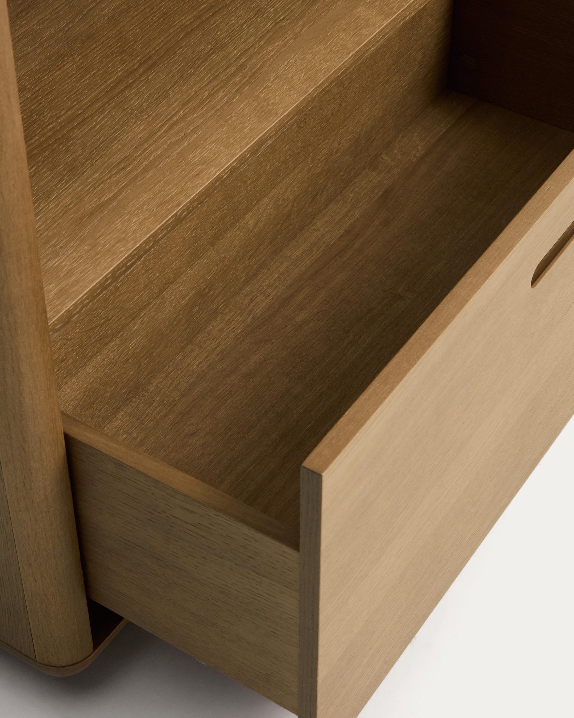 Коллекция Arelida изготовлена из дубового шпона и массива дуба с коричневой отделкой, которая подчеркивает текстуру и рисунок древесины, придавая каждому изделию теплоту и сбалансированный вид. Плавные линии и закругленные края определяют изысканный дизайн, приятный на ощупь. Она оснащена системой плавного закрывания и регулировочными элементами на основании для выравнивания неровностей пола. Локальное производство в Европе и ручная работа способствуют снижению выбросов CO₂ и обеспечивают более экологичное производство.