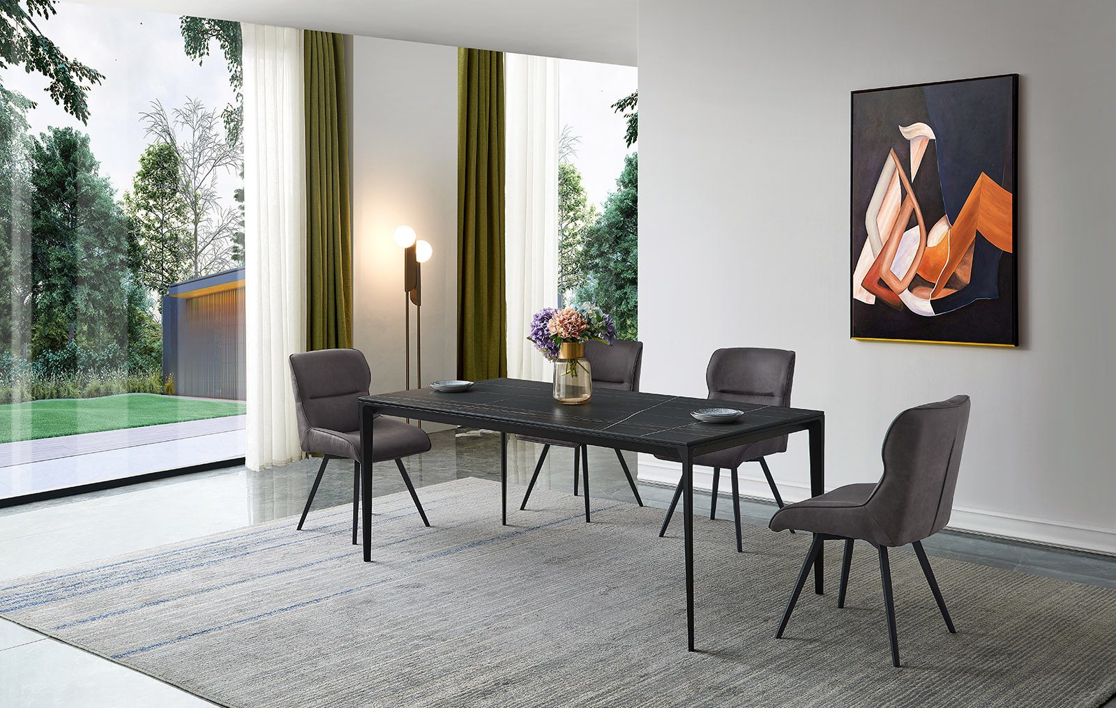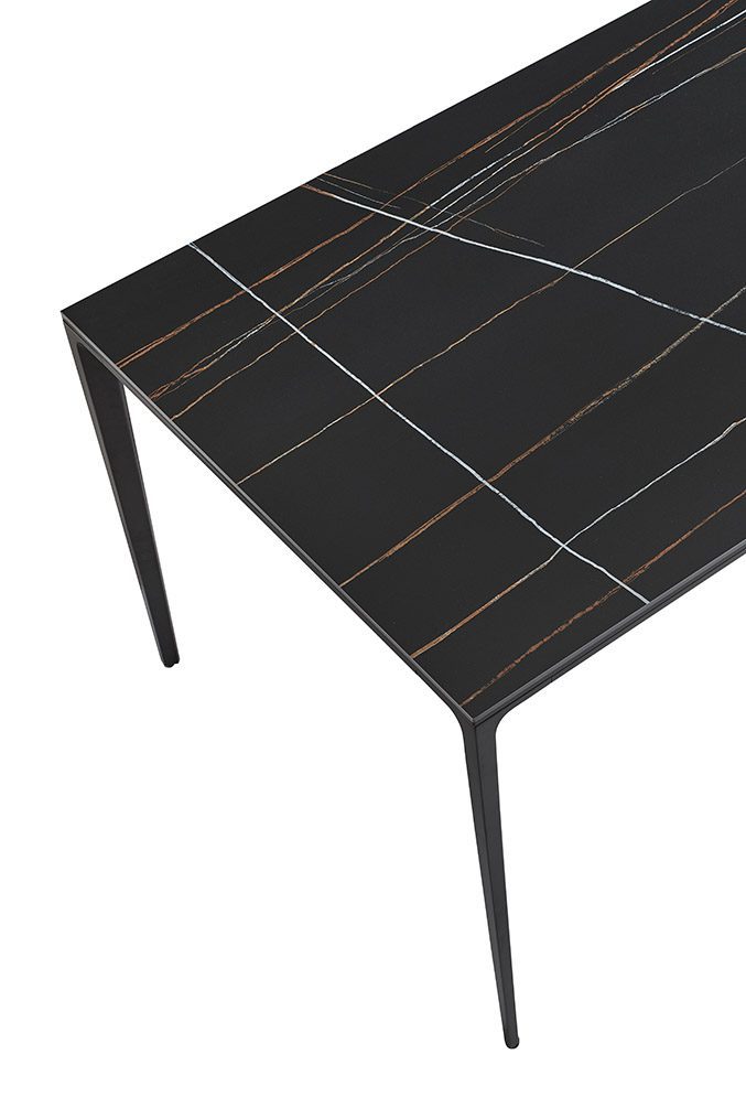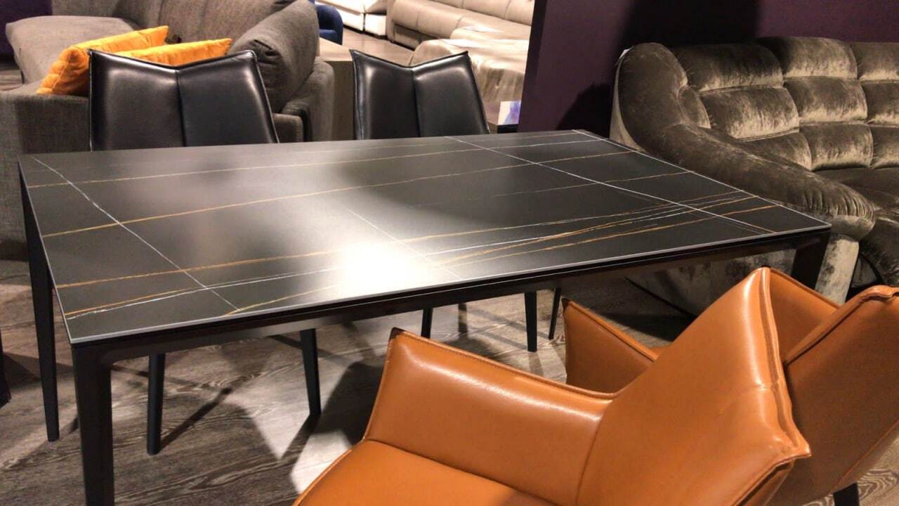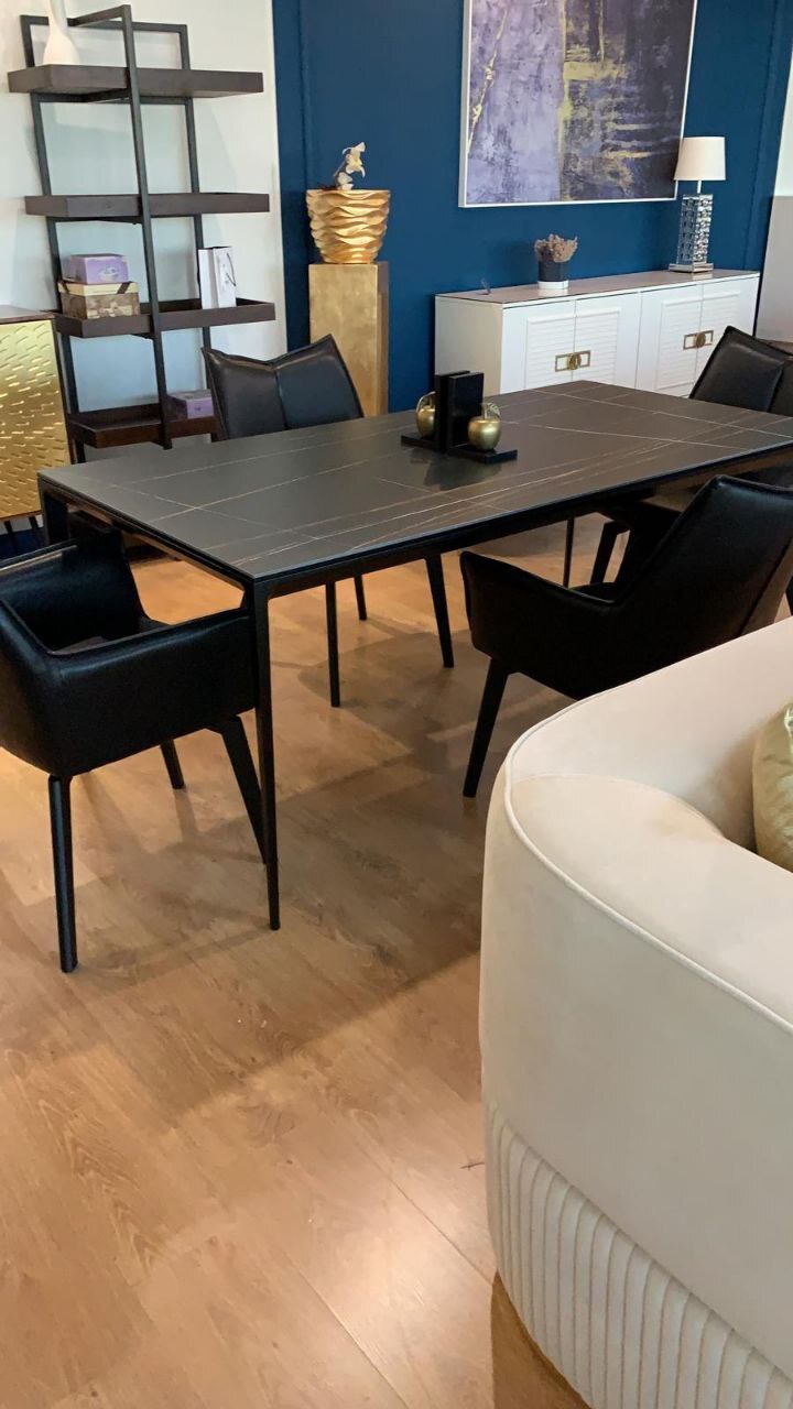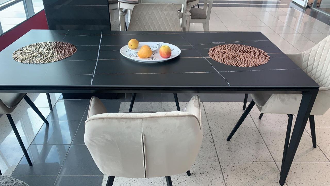 Обеденный стол Varna — это образец современной минималистичной эстетики, где мощь чёрного цвета сочетается с безупречной функциональностью. Его доминанта — массивная столешница из чёрной керамики. Керамика премиум-класса обеспечивает феноменальную износостойкость: она не боится царапин, высоких температур, влаги и бытовых пятен, сохраняя безупречный вид на протяжении многих лет.