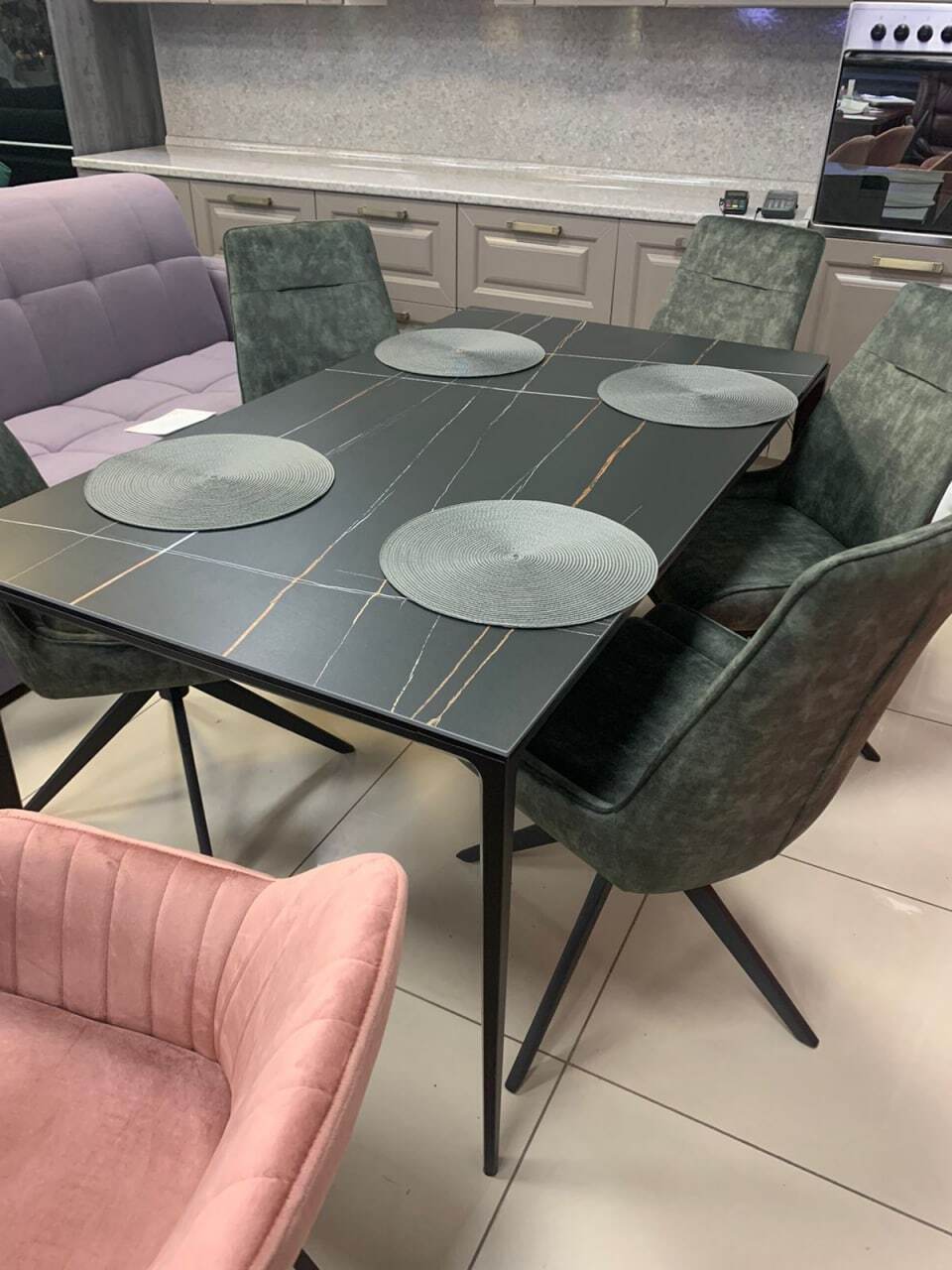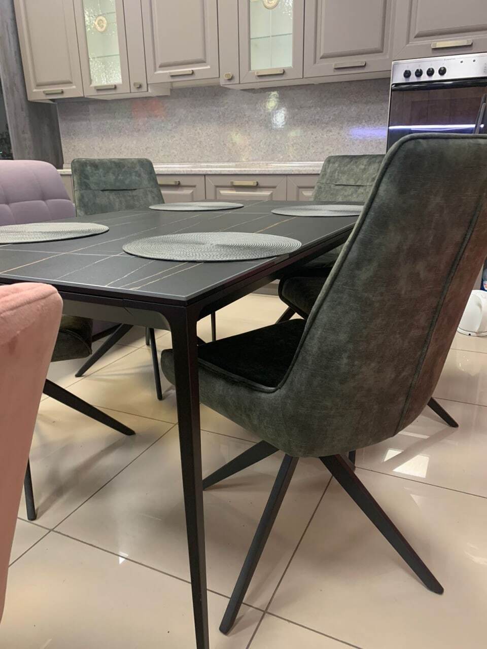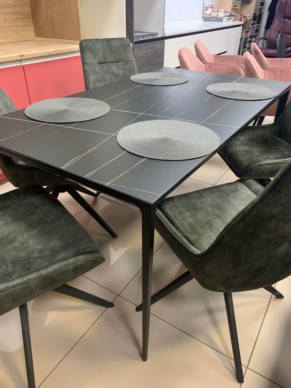 Обеденный стол Varna — это образец современной минималистичной эстетики, где мощь чёрного цвета сочетается с безупречной функциональностью. Его доминанта — массивная столешница из чёрной керамики. Керамика премиум-класса обеспечивает феноменальную износостойкость: она не боится царапин, высоких температур, влаги и бытовых пятен, сохраняя безупречный вид на протяжении многих лет.