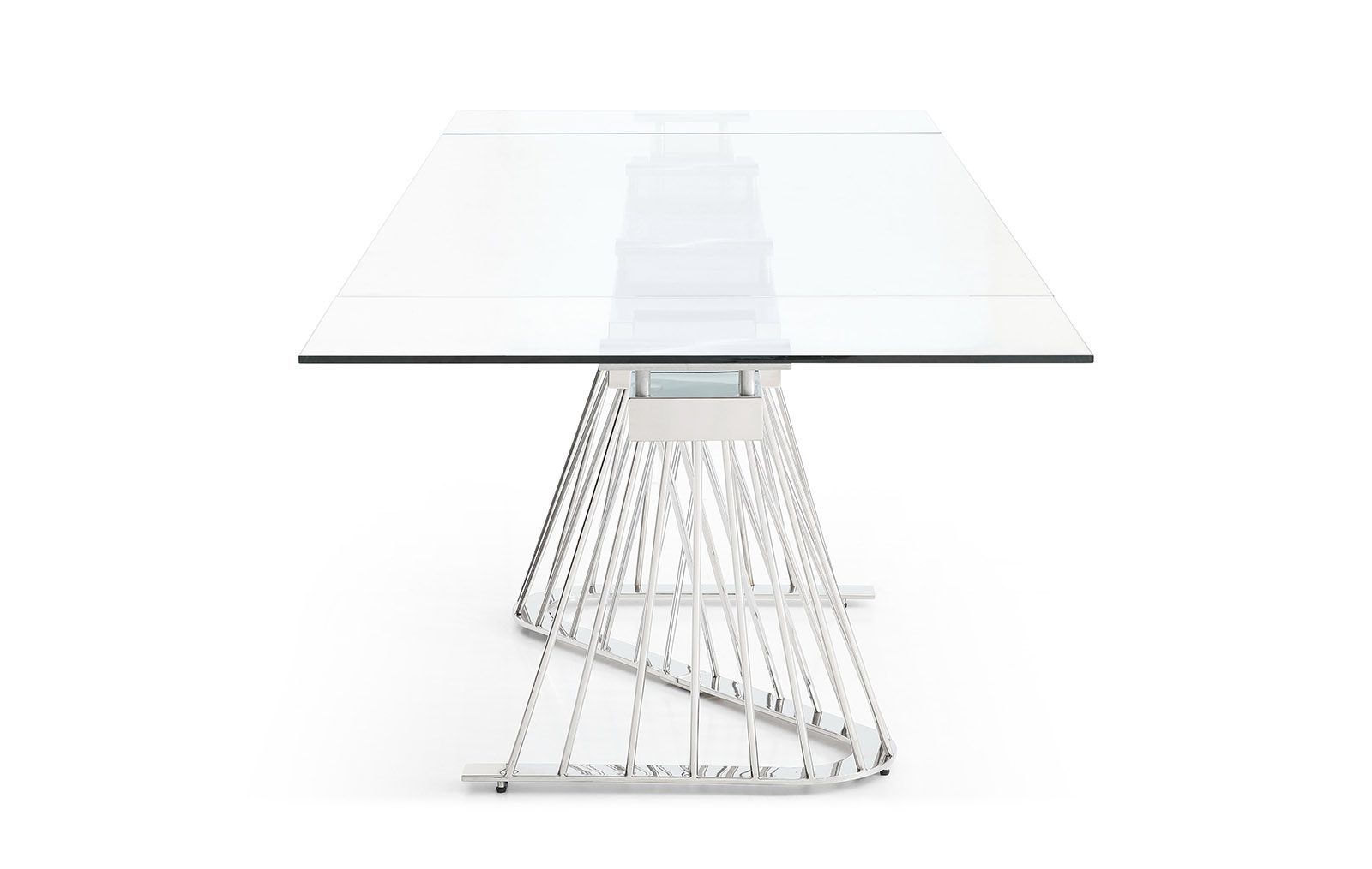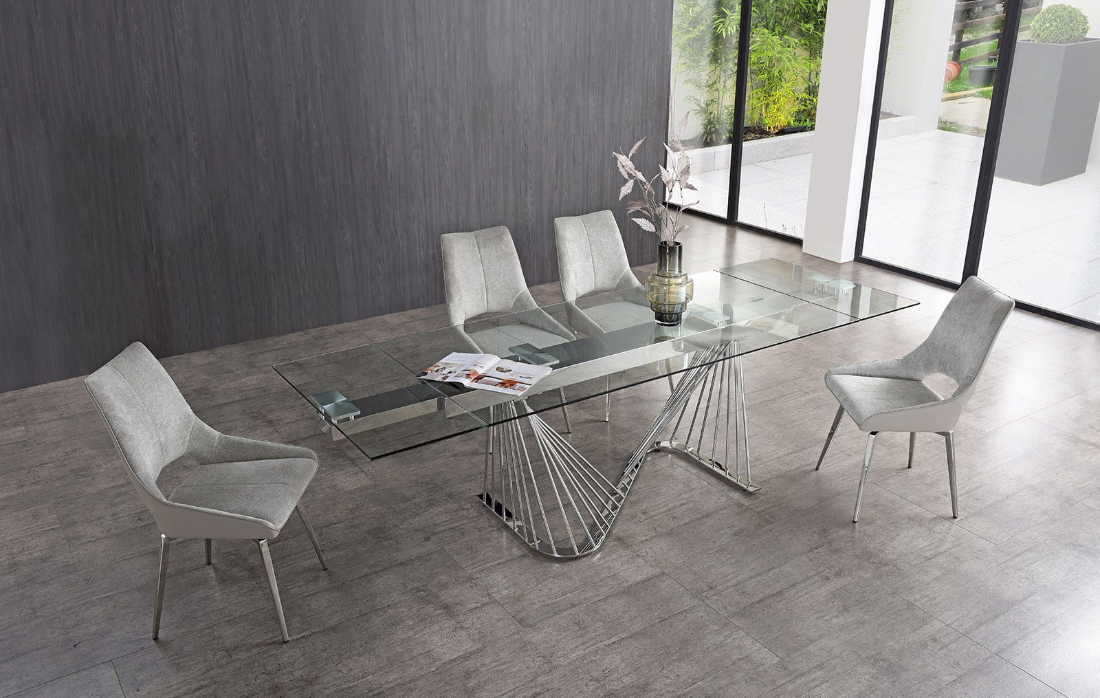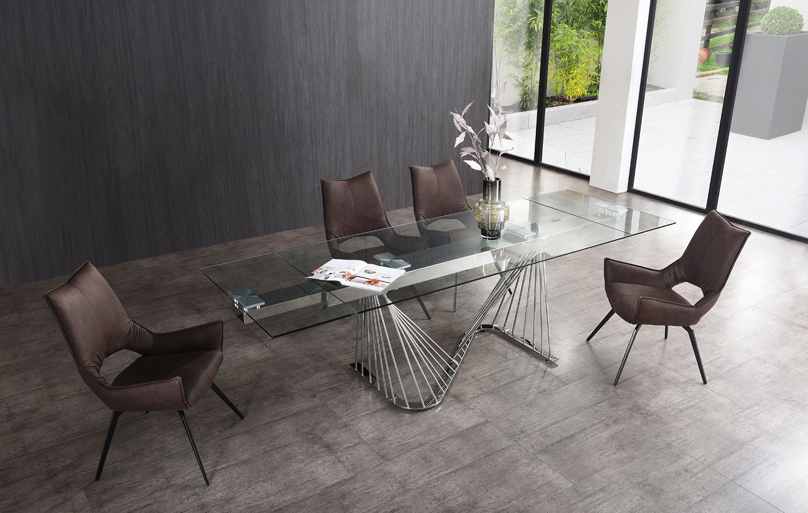 Стол Kron — это абсолютный триумф инженерной мысли и визуальной невесомости. Его главная особенность — трансформация масштаба, которая происходит почти незаметно для глаза. В сложенном состоянии это внушительный стол шириной 180 см, готовый принять компанию из 6-8 человек. Но когда приходит время большого праздника, Kron преображается, увеличивая ширину до эпических 260 см. Это один из самых длинных раздвижных стеклянных столов на рынке, способный с комфортом разместить до 12 гостей.