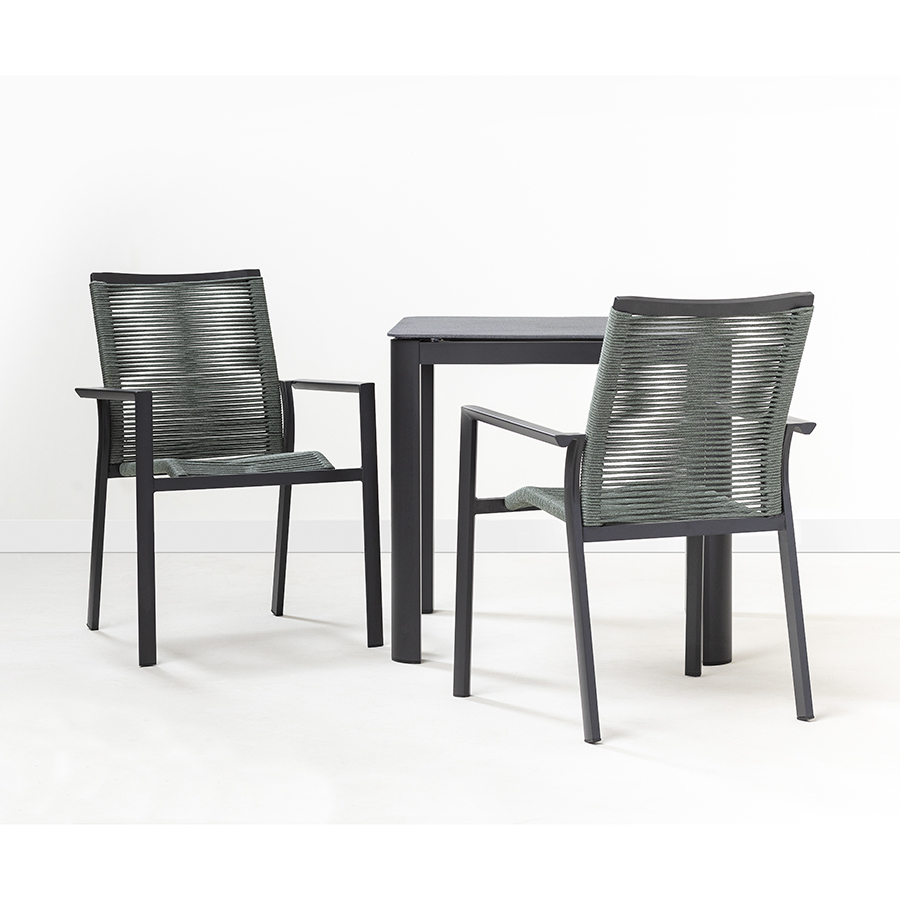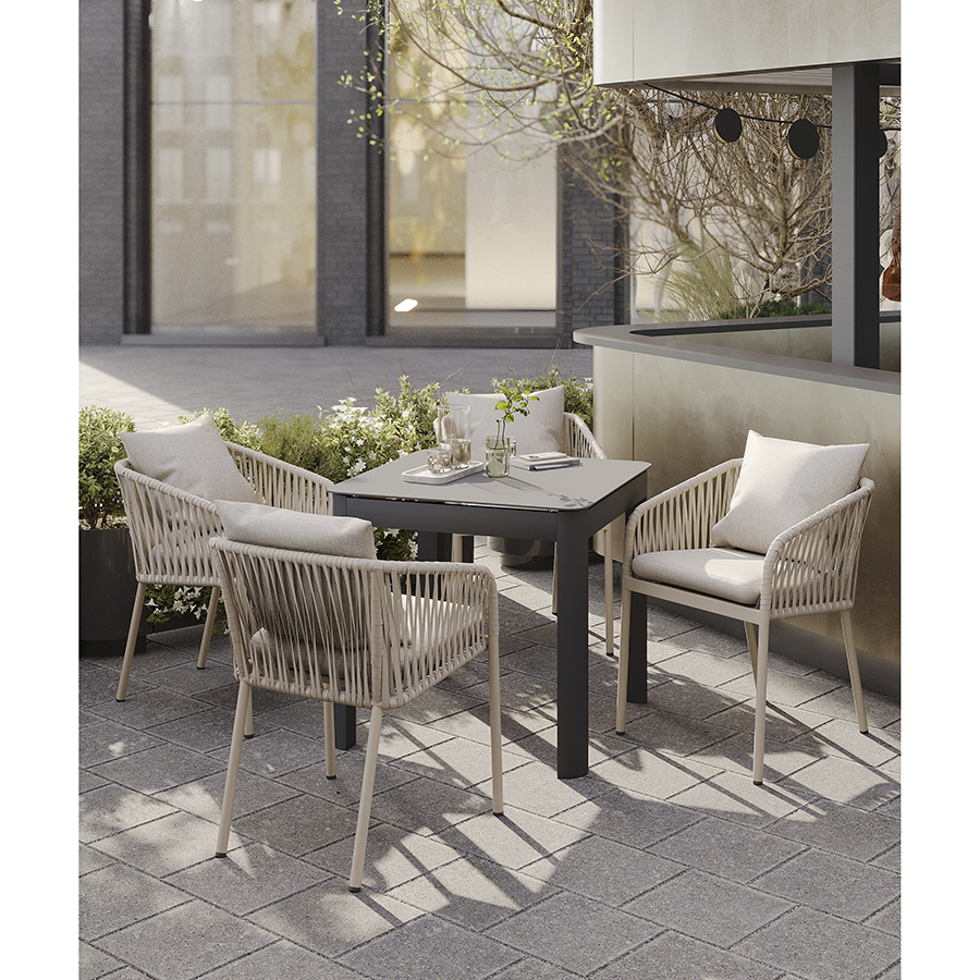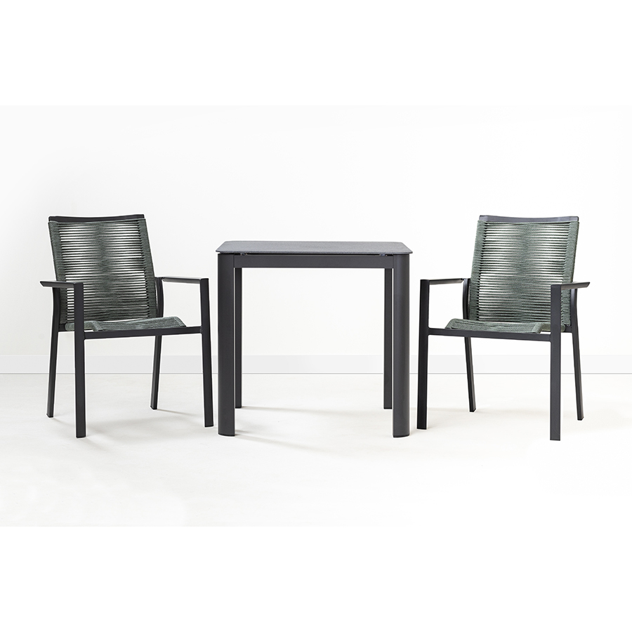 Стол обеденный Leif – прекрасный вариант для обустройства уютного пространства в зоне отдыха и приема пищи. Вы можете использовать этот предмет мебели не только в помещении, но и на открытой террасе или в саду, не беспокоясь о том, что он будет поврежден дождем, солнцем или влагой. Особенности и преимущества: - Покрытие голландской фирмы AkzoNobel, лидера в производстве покрытий для металлических изделий, обеспечивает мебели высокую износостойкость и возможность использования в уличных условиях. - Стол имеет прочный каркас из алюминиевой трубы толщиной 1,2 мм и 1,5 мм. - Круговая полная сварка по всей поверхности соприкосновения шва гарантирует конструкции надежность и долговечность. - Столешница из ударопрочного закаленного стекла толщиной 5 мм имеет безупречно гладкую поверхность, легко моется и долго сохраняет привлекательный вид. - Стол выдерживает нагрузку до 60 кг. - Гарантия на мебель – 12 месяцев. Материал: алюминий, закаленное кварцевое стекло. Размеры: 80х80х75 см. Расстояние между ножками: 76 см. Цвет: темно-серый. Пыль и загрязнения рекомендуется удалять с поверхностей при помощи мягкого влажного материала. Для очищения столешницы можно использовать специальное средство для стекол. Запрещается применение абразивов и агрессивной бытовой химии.