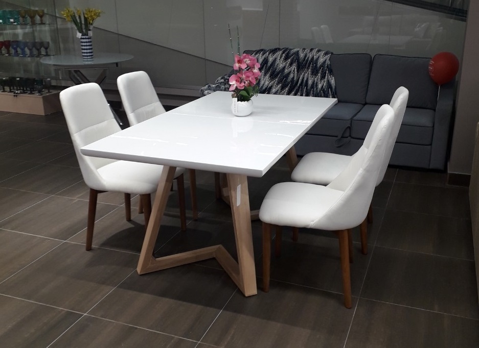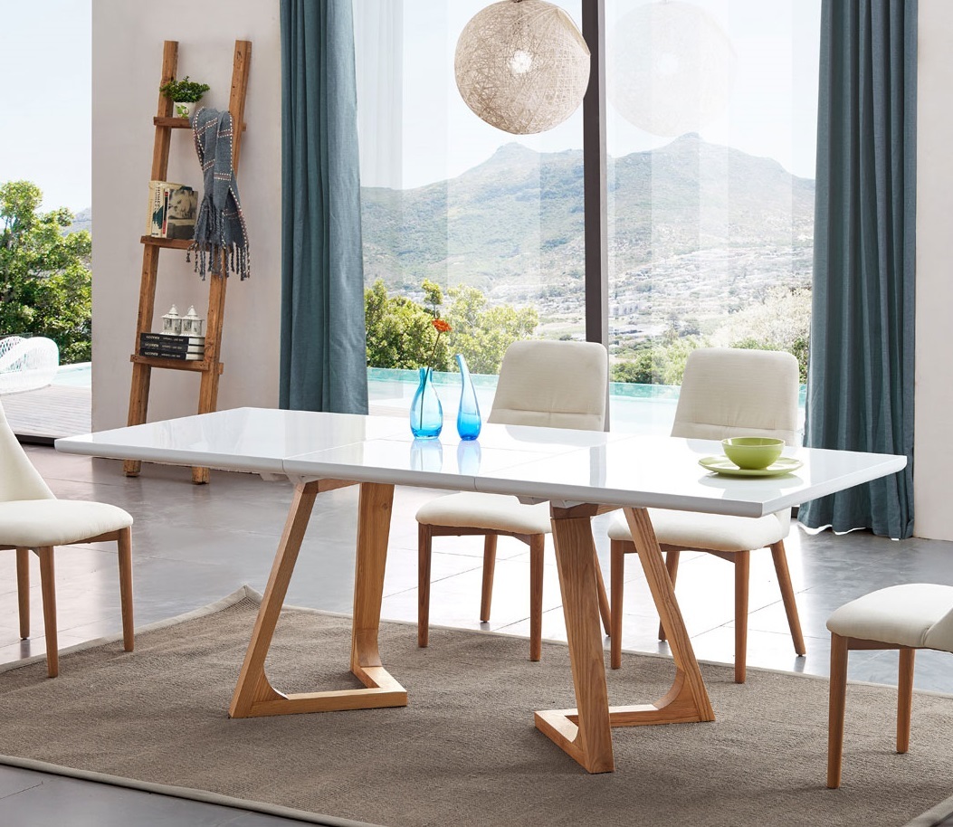 Раскладной обеденный стол Scandi — это идеальное решение для современных пространств, где ценится функциональность, светлая эстетика и натуральные материалы. Его дизайн воплощает принципы скандинавского стиля: чистота линий, практичность и уют. Столешница из белого МДФ создаёт ощущение чистоты, визуально расширяет пространство и служит универсальным фоном для любой посуды, сервировки и декора. Тёплые деревянные ножки контрастно подчеркивают лёгкость столешницы, добавляя интерьеру натуральности и тепла.