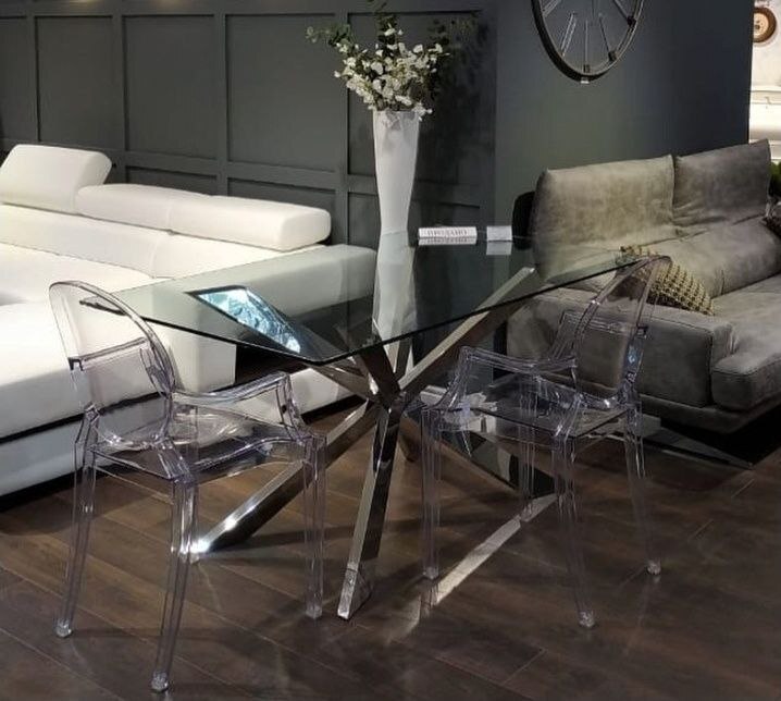 Дизайн стола Sofia демонстрирует силу чистых линий и индустриальной элегантности. Он функционирует как «невидимый» архитектурный элемент, позволяя остальным предметам мебели и декору играть первую скрипку. Этот стол станет безупречным центром большой обеденной зоны в просторной кухне-гостиной, лофте или столовой. Его прозрачность делает его универсальным для любых цветовых палитр и стилей, от минимализма и хай-тека до эклектики, где он будет служить сдержанным и изысканным фоном для ярких акцентов.