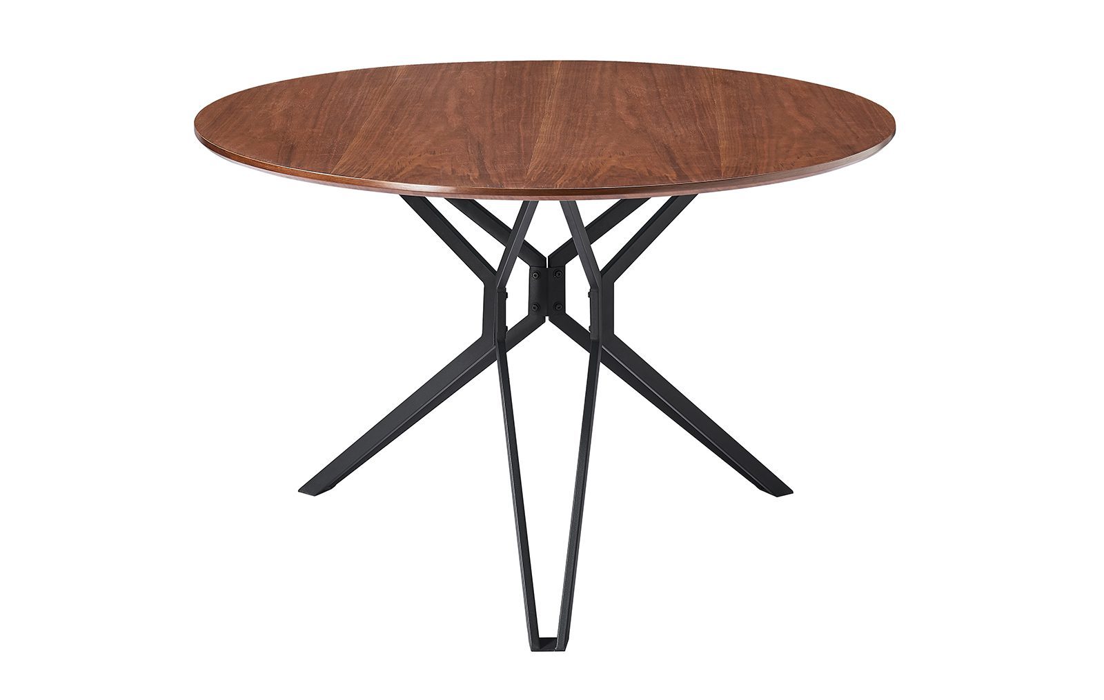 Стол обеденный круглый White, диаметр 120 см, орех (натуральный шпон) / черный металл