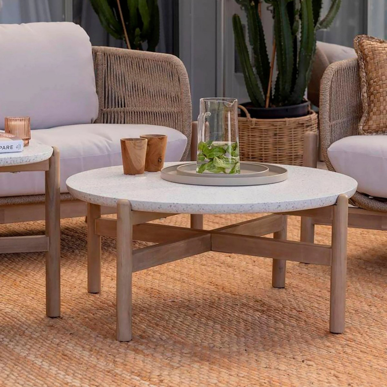 Talara - это современный, но неподвластный времени кофейный столик с каменной столешницей и деревянным каркасом - это идеальный выбор для любого сада, патио, террасы или зимнего сада. Благодаря своему простому стилю и использованию натурального дерева столик легко впишется как в современный, так и в традиционный сад. Изготовленный из высококачественной АКАЦИИ, столик Talara прочный и долговечный. Древесина, одобренная FSC, обладает естественной водонепроницаемостью, поэтому вы можете хранить изделие на открытом воздухе круглый год. Цвет натуральной твердой древесины представляет собой натуральный цвет с мелкой текстурой, придающий древесине приятный теплый вид. Особенности: Материал ножек - АКАЦИЯ, отделка экомаслом тик Light #01A. Древесина, из которой изготовлена мебель, имеет сертификацию FSC (Forest Stewardship Council) - гарантия качества и происхождения древесины. Знак FSC - показатель того, что продукция происходит из леса, в котором ведется экологически и социально ответственное лесное хозяйство. Благодаря своей долговечности, прочности и устойчивости к вредителям эта древесина была создана для изготовления садовой мебели. Страна происхождения древесины: Вьетнам, Малайзия. Средняя плотность древесины: 550 кг/м3. Столешница - искусственный камень Terrazzo. Анодированная фурнитура из нержавеющей стали. Столик поставляется в разобранном виде, необходима сборка. Открыть инструкцию по уходу. Вся деревянная мебель должна обрабатываться специальным маслом или пропиткой минимум 1 раз в 6 месяцев (в условиях высокой влажности обработку следует проводить чаще). Для данной мебели не рекомендуются резкие температурные перепады. Мебель из дерева акации должна использоваться только под навесом. Дерево является натуральным материалом, поэтому любые трещины, неравномерные природные рисунки, различность оттенков ‐ являются естественным процессом, который вызван температурными изменениями или влажностью.