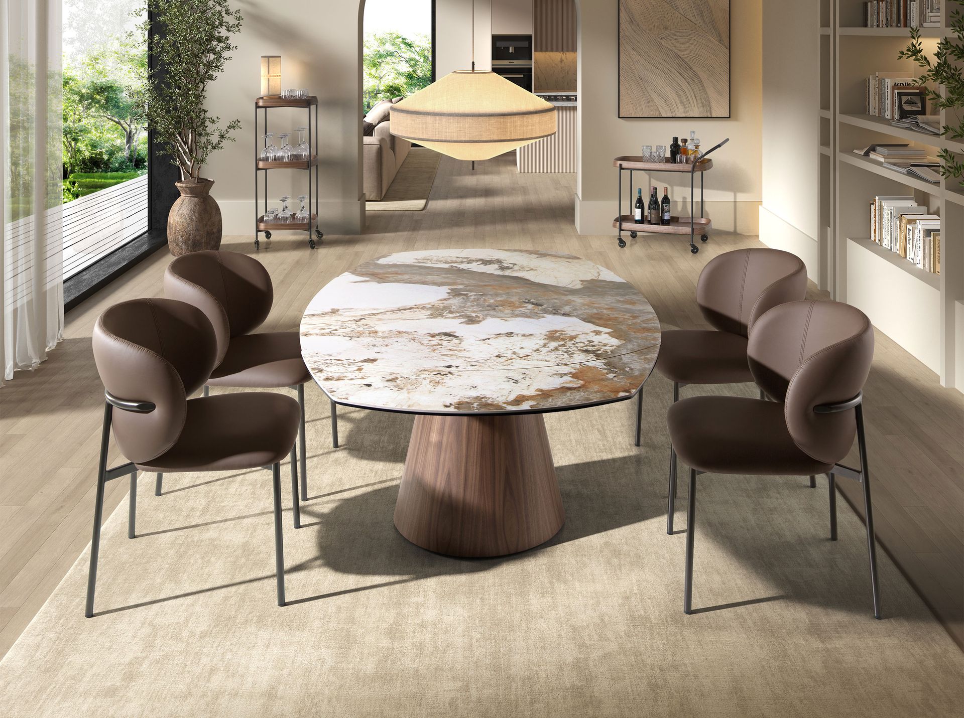 Современный дизайнерский стул с сиденьем и спинкой, обитыми темно-коричневой искусственной кожей. Его стальные ножки, окрашенные в коричневый цвет, благодаря своему авангардному, но вневременному стилю, делают его незаменимым элементом вашей кухни или столовой. Этот стул Angel Cerdá сочетает в себе уникальный и индивидуальный стиль бренда с максимальным комфортом и устойчивостью, благодаря высокому качеству обивки и оригинальной конструкции ножек.