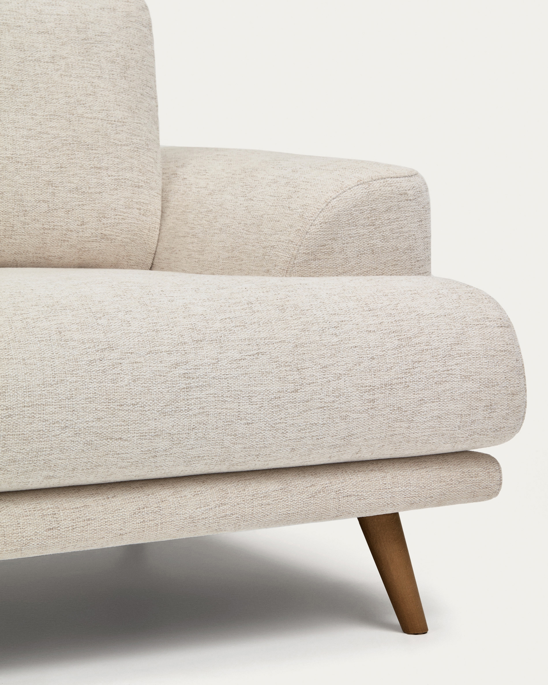Трехместный диван Karin бежевого цвета с ножками из массива бука в отделке орех, 231 см