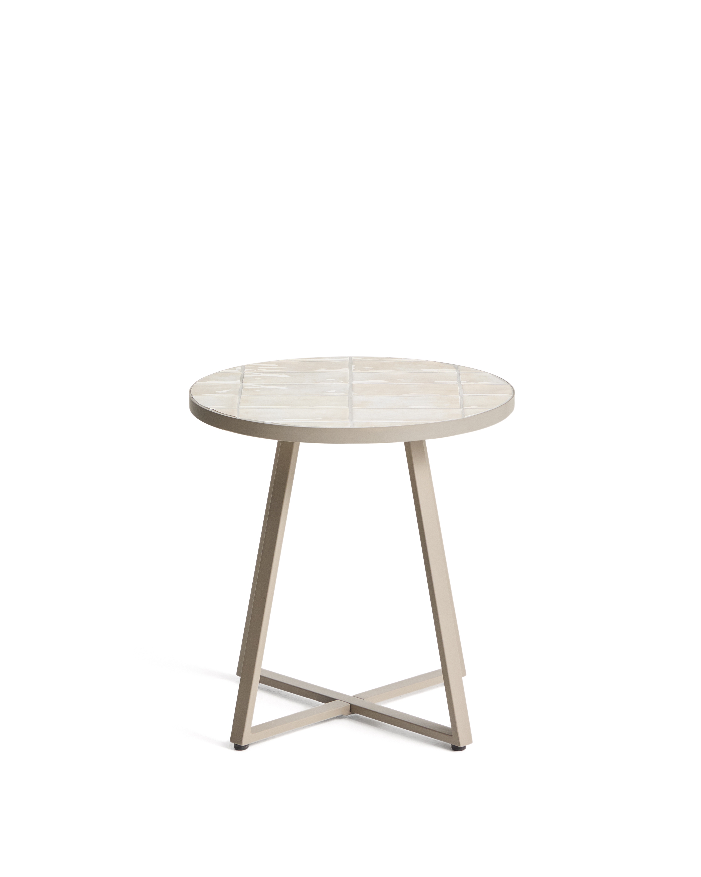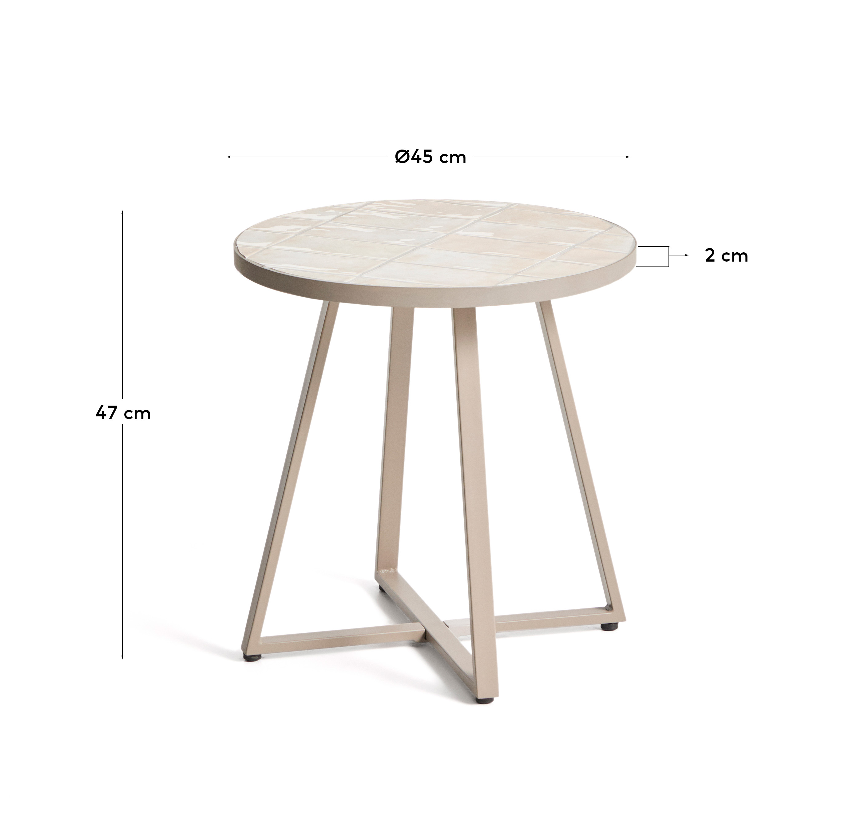 Уличный столик Tella из бежевой стали с бежевой плиткой 45 см