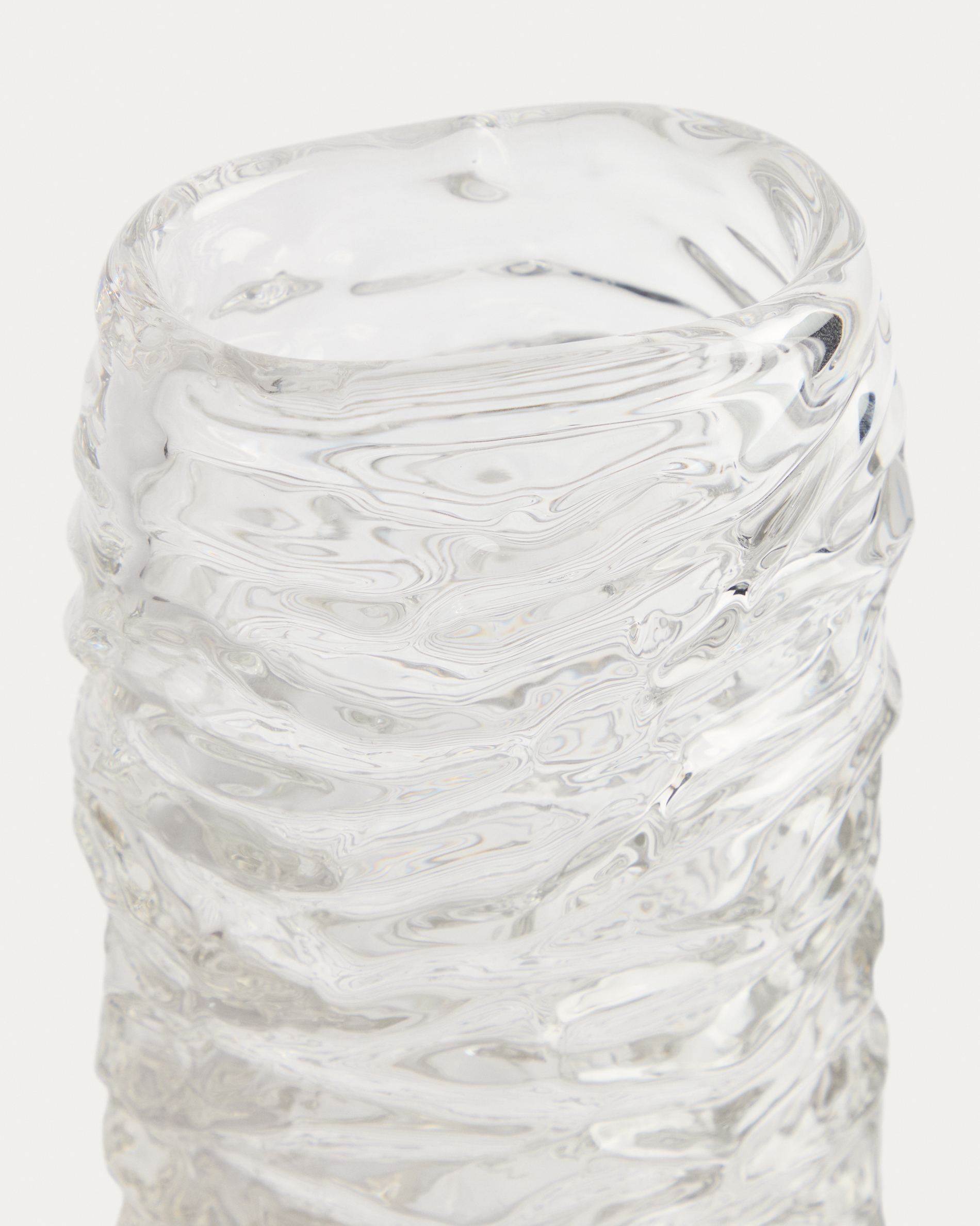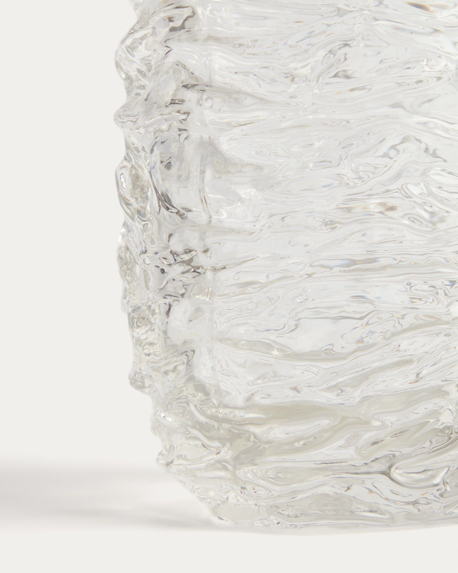 Коллекция Vorma включает в себя изделия из стекла с поверхностью, отмеченной неровными рельефами. Это создает уникальные дизайны, где текстура определяет их визуальную идентичность. Объем и прозрачность материала создают игру света и тени, которая варьируется в зависимости от изделия и его расположения, позволяя ему органично вписываться в различные пространства, как в качестве центрального элемента, так и в качестве дополнения к другим декоративным композициям.