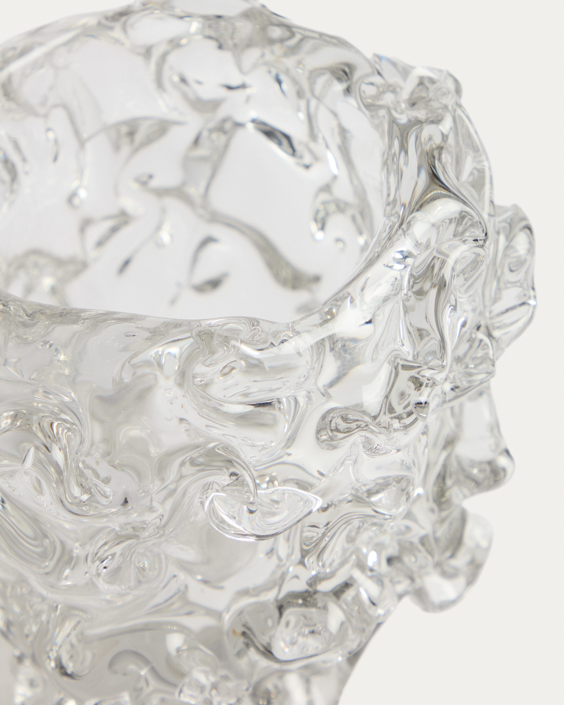 Коллекция Vorma включает в себя стеклянные изделия с поверхностью, отмеченной неровными рельефами. Это создает уникальные дизайны, где текстура определяет их визуальную идентичность. Объем и прозрачность материала создают игру света и тени, которая варьируется в зависимости от изделия и его расположения, позволяя ему органично вписываться в различные пространства, как в качестве центрального элемента, так и в качестве дополнения к другим декоративным композициям.