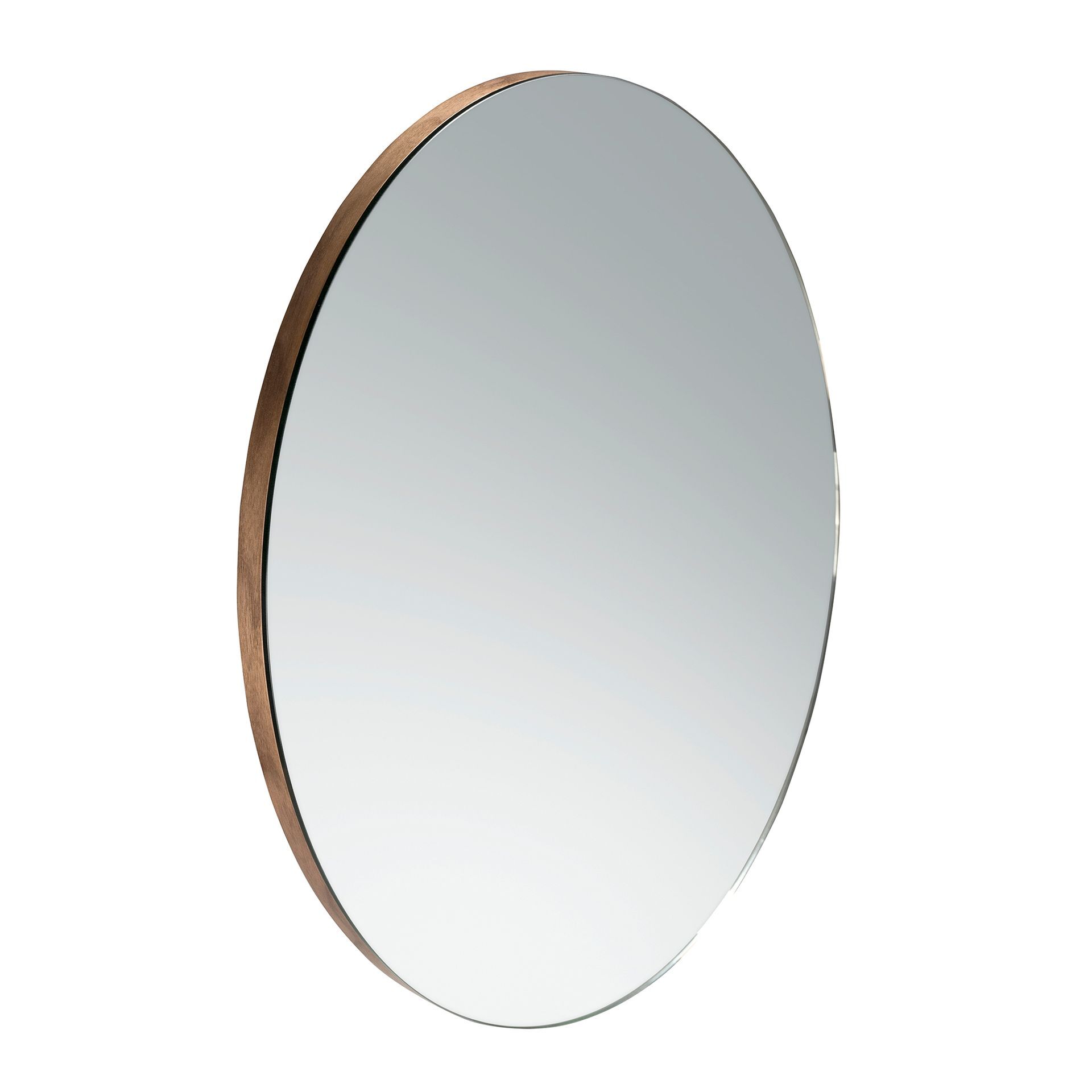 Круглое настенное зеркало современного дизайна с рамой из натурального орехового шпона. Это зеркало идеально подходит для создания элегантной и авангардной атмосферы, обеспечивая большее ощущение простора и яркости.