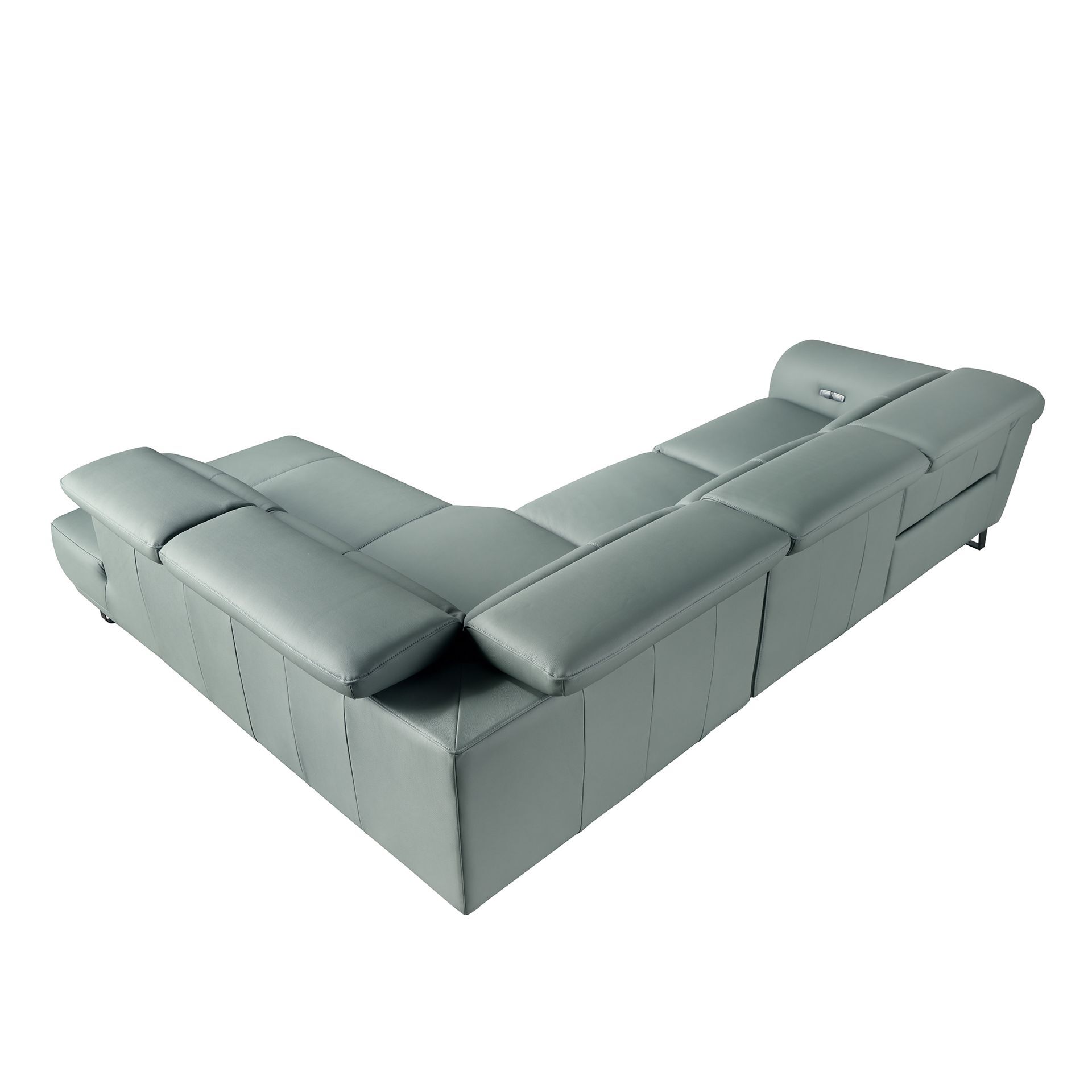 Угловой диван- реклайнер с правым шезлонгом 6252 из бирюзовой кожи
