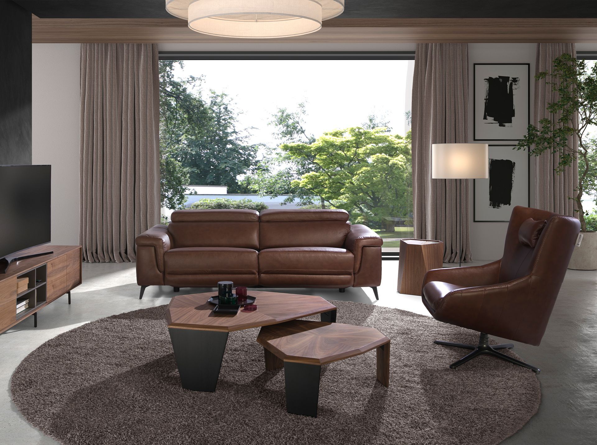 Угловой столик 2134/AC2308 из ореха и керамики