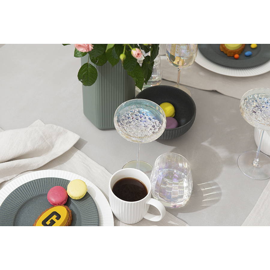 Линейка Gemma Opal привлекает лаконичным дизайном и необычным цветовым решением в виде радужных переливов. Вся посуда выполнена вручную из выдувного стекла. Такой способ производства позволяет играть с линиями и изгибами, создавая уникальные и неповторимые продукты. Изделия получаются более прочными, но при этом тоньше и прозрачнее аналогов из обычного стекла. Креманки Gemma Opal – эффектный способ подать к столу десерты или игристые напитки. В слегка волнистых стенках широкой чаши красиво преломляется свет, а удлиненная ножка делает силуэт более утонченным. Такая посуда создает праздничное настроение даже во время обычного приема пищи. Материал, из которого выполнены изделия, долговечный, не требует сложного ухода. Комбинируйте предметы из одноименной линейки – декантер, бокалы, стаканы для воды, чтобы создать завершенную композицию и удивить гостей изысканной сервировкой. Наши продукты прошли испытания на отсутствие в составе свинца и кадмия в соответствии со стандартными тестами FDA. Материал: выдувное стекло. Размеры: 10,7х10,7х18,6 см. Объем: 255 мл. Количество в наборе: 4 шт. Рекомендовано ручное мытье с помощью мягкой губки с жидким чистящим средством.