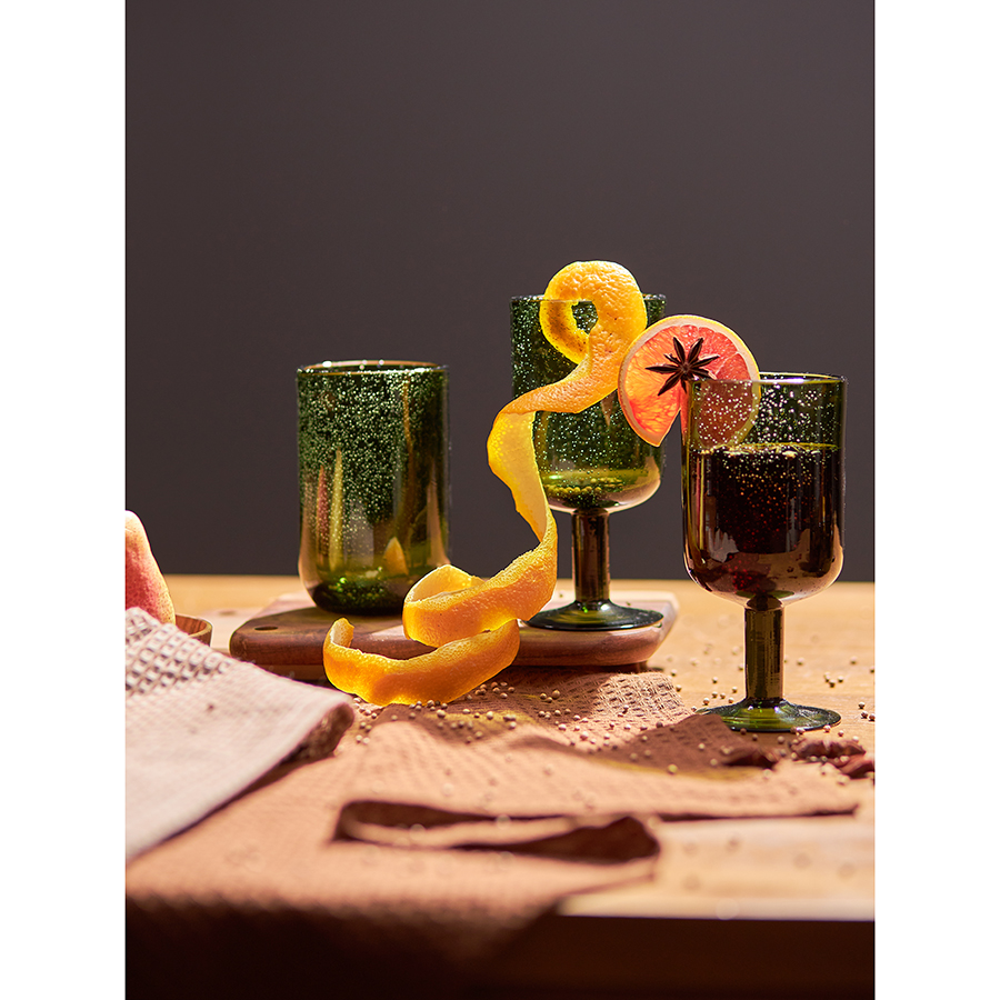 Набор стаканов из коллекции Flowi от бренда Liberty Jones привлекает внимание необычным дизайном. Изделия выполнены вручную из переработанного стекла, поэтому их размеры, а также рисунок пузырьков будут отличаться от фото: сами пузырьки могут быть разного размера и формы, а также могут образовывать неравномерные скопления. Это создает эффект настоящего потока воды, застывшего в стенке бокала. Такое исполнение делает каждое изделие уникальным, что является важной чертой коллекции Flowi: через легкую небрежность ее контуров и текстуры создается впечатление живого течения реки, которая в бурлящем потоке смешивает воду и воздух. Материал: стекло ручной работы. Размеры: 8х8х13,5 см. Объем: 510 мл. Цвет: темно-зеленый. Количество предметов в наборе: 2 шт. Можно мыть вручную и в посудомоечной машине.