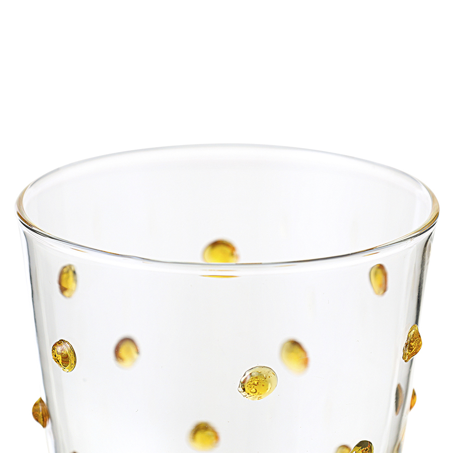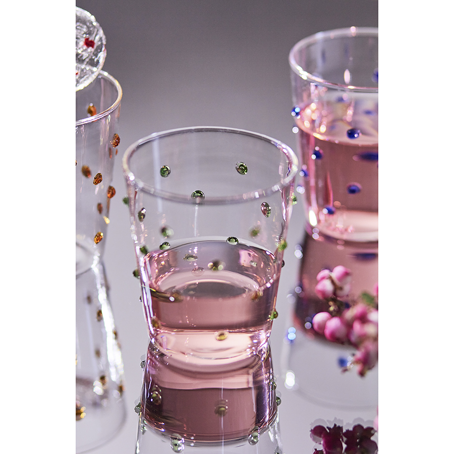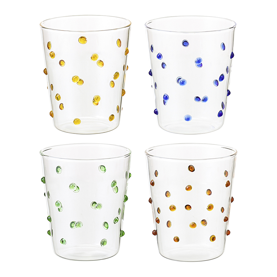 Набор из 4-х стаканов Pom-pon станет прекрасным приобретением для тех, кто любит необычные предметы сервировки. Коллекция привлекает внимание интересным дизайном – стенки посуды украшает объемный декор в виде застывших цветных капель. Особенности и преимущества: - Стаканы выполнены из боросиликатного стекла, что делает их практичными и долговечными. - Материал отличается повышенной прочностью, не содержит в своем составе вредных соединений и легко моется. - Декор в виде цветных капель делает дизайн уникальным и узнаваемым. Материал: боросиликатное стекло. Размеры: 8,5х6,8х11 см. Верхний диаметр: 8,5 см. Нижний диаметр: 6,7 см. Толщина стенки: 0,2 см. Объем: 425 мл. Количество в наборе: 4 шт. Стаканы рекомендуется мыть вручную в теплой мыльной воде с помощью мягкой губки. Запрещается использование абразивных материалов и агрессивной бытовой химии.