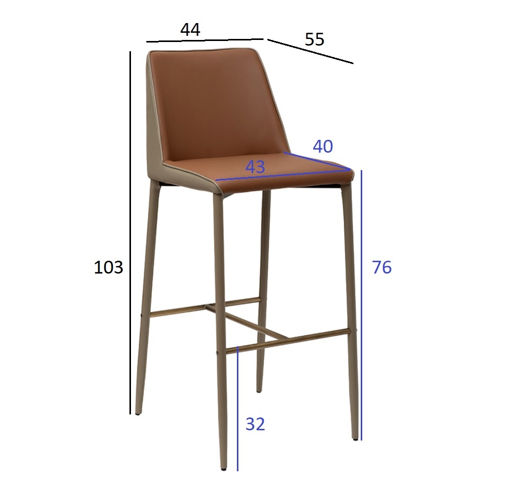 Барный стул оттенка терракота, обтянутый стильной экокожей — стильный акцент любой кухни или гостиной! Современный минимализм дизайна подчеркнут изысканной ножкой из стали, покрытой бежевой экокоже с латунной отделкой. Верхняя обивка сочетает практичность материала и элегантность форм, наполнитель – высококачественный пенополиуретан. Подходит к деревянным, шпоновым и каменным барным стойкам. Удобен в уборке и надежен долгие годы! Размеры сиденья: ширина 43см, глубина 40см, высота 76см, перекладина на высоте 32см. Сочетается с обеденным стулом 163YH-06995