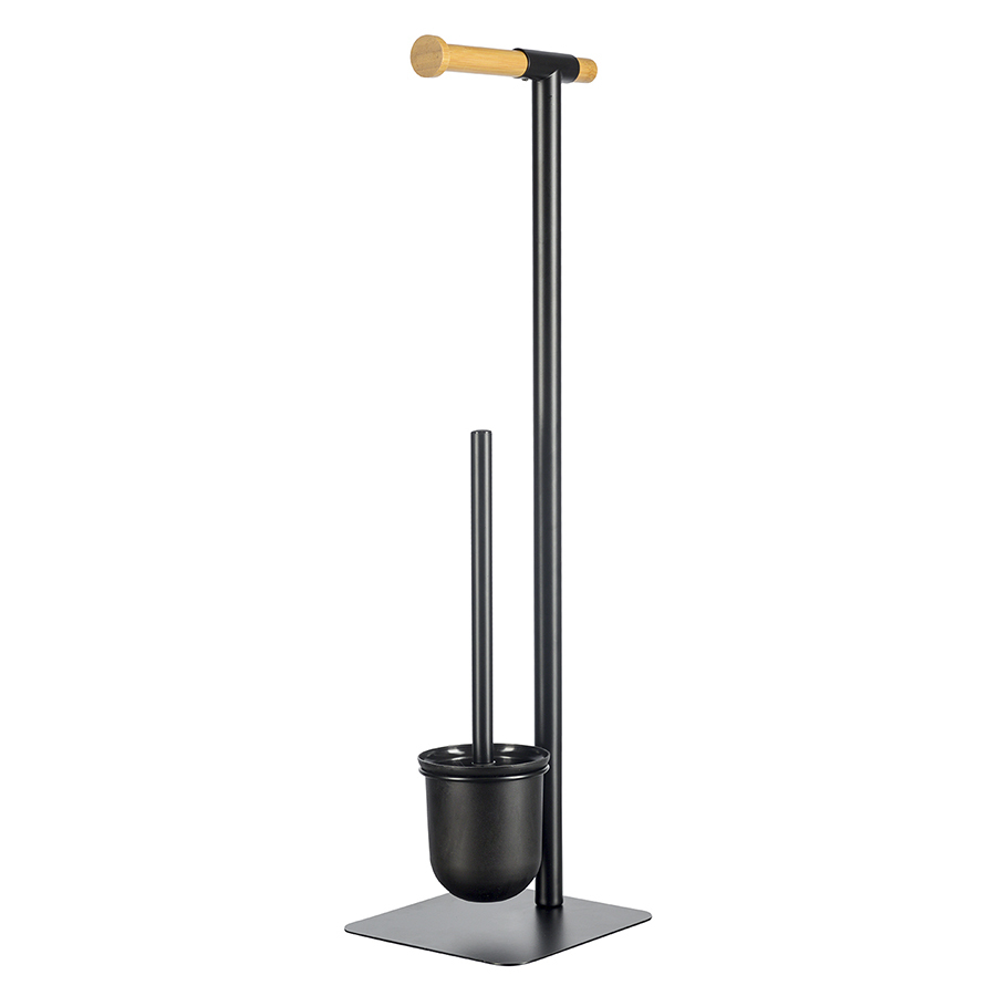 Держатель для туалетной бумаги с ершиком Mats от бренда Bergenson Bjorn представляет собой стильную и продуманную до мелочей конструкцию, которая прекрасно впишется в интерьер любого современного санузла. Сочетание элементов из железа и бамбука обеспечивает напольному аксессуару практичность, долговечность и интересный вид. Щетка с изогнутой рукояткой удобно сидит в руке и позволяет качественно очищать унитаз в труднодоступных местах. Внутренний контейнер из пластика защищает металлический корпус от прямого контакта с водой и загрязнениями, легко моется. За счет минималистичного дизайна и классического цветового решения модель отлично сочетается с различными вариантами оформления помещения. Материал: железо, бамбук. Размеры: 20,5х18х67 см. Цвет: черный. Пыль и загрязнения рекомендуется удалять при помощи мягкого влажного материала.