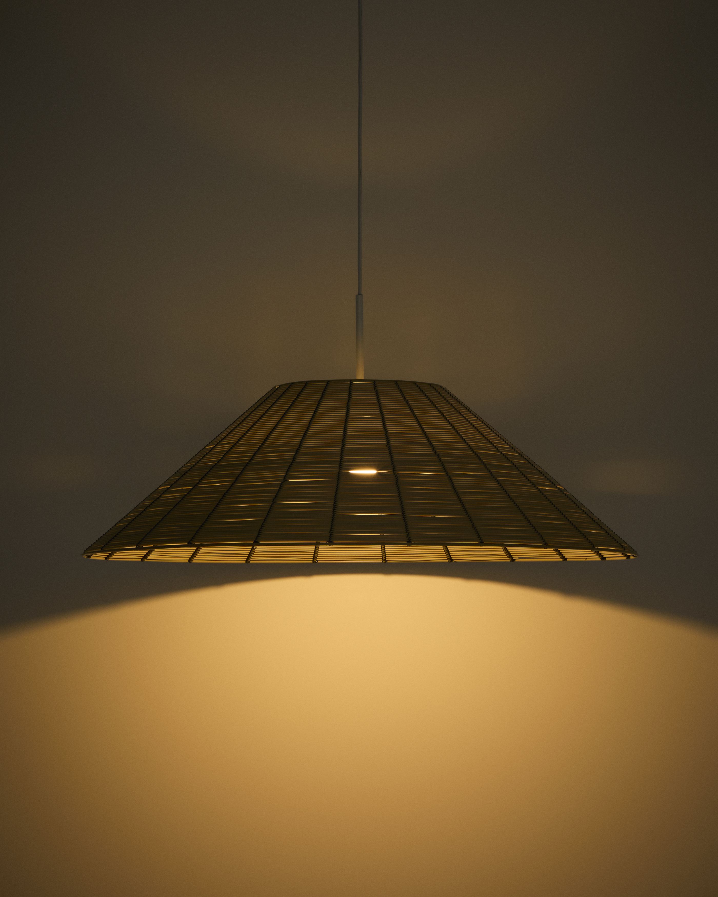 Абажур потолочного светильника Saranella сплетен вручную из синтетического ротанга на металлической основе, что делает его легким и устойчивым к воздействию внешних условий. Плетение позволяет свету проходить сквозь него мягко и равномерно, создавая теплое и приятное освещение. Благодаря простому и сбалансированному дизайну, он добавляет текстуру и глубину пространству. Крепление продается отдельно и может использоваться с креплениями для потолочных светильников Albir для наружного применения, обеспечивая единообразный внешний вид и внимание к деталям.