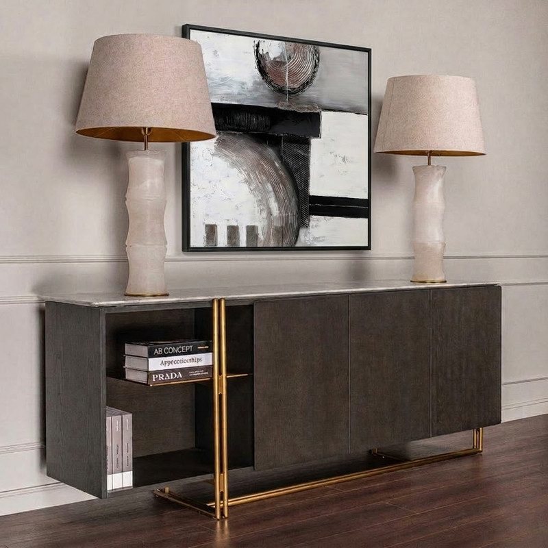 Роскошный буфет с золотыми элементами от итальянского бренда Fratelli Barri. Столешница изготовлена из натурального мрамора, ножки — из алюминия. Модель изготовлена из высококачественной МДФ. Буфет оснащен 3 дверцами с механизмом открывания soft-closing и открытой полкой. Данный предмет — часть новой коллекции Concept от Fratelli Barri, включающей всю корпусную мебель для спальни, гостиной и столовой. Вы можете оформить интерьер вашей квартиры или дома в едином стиле.