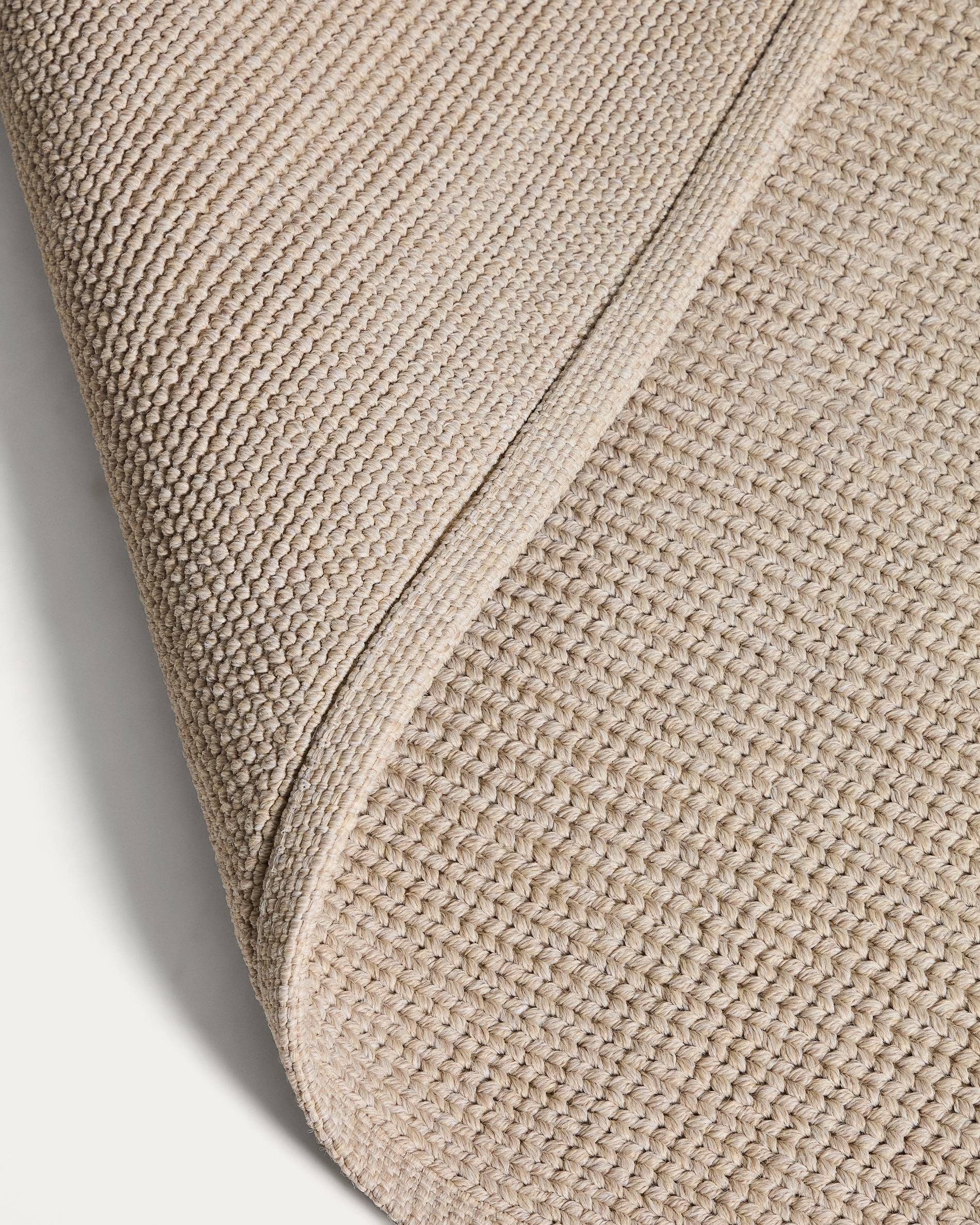 Ковер Turiane изготовлен из синтетических волокон с мелкоячеистой текстурой, которая придает ткани плотность и однородность. Двусторонняя конструкция позволяет использовать его с обеих сторон, обеспечивая большую универсальность и функциональность. Синтетические волокна легко чистятся и сохраняют свой внешний вид при комнатной температуре. Подходит для использования как в помещении, так и на открытом воздухе. Каждое изделие изготавливается вручную, поэтому возможны незначительные вариации в отделке.