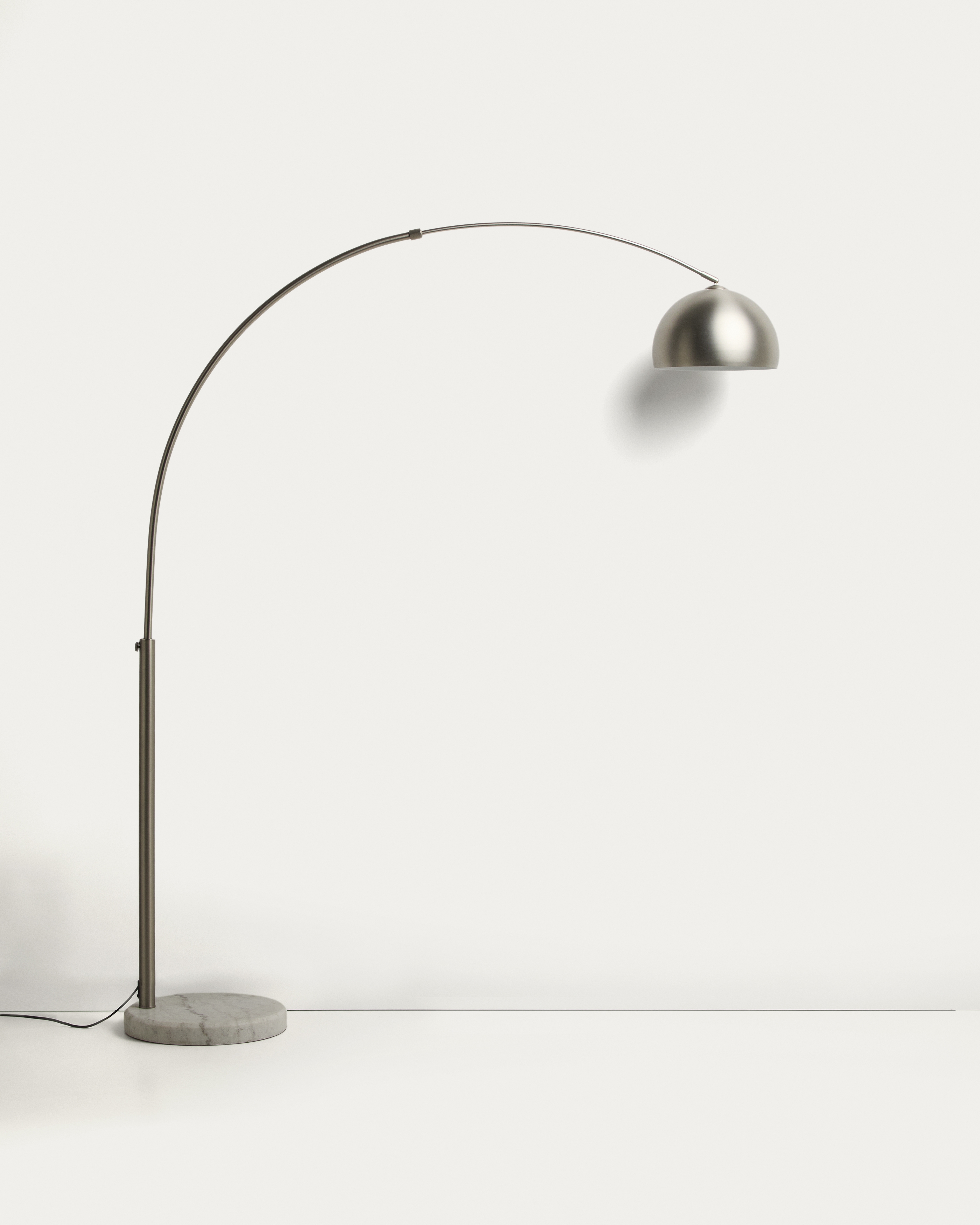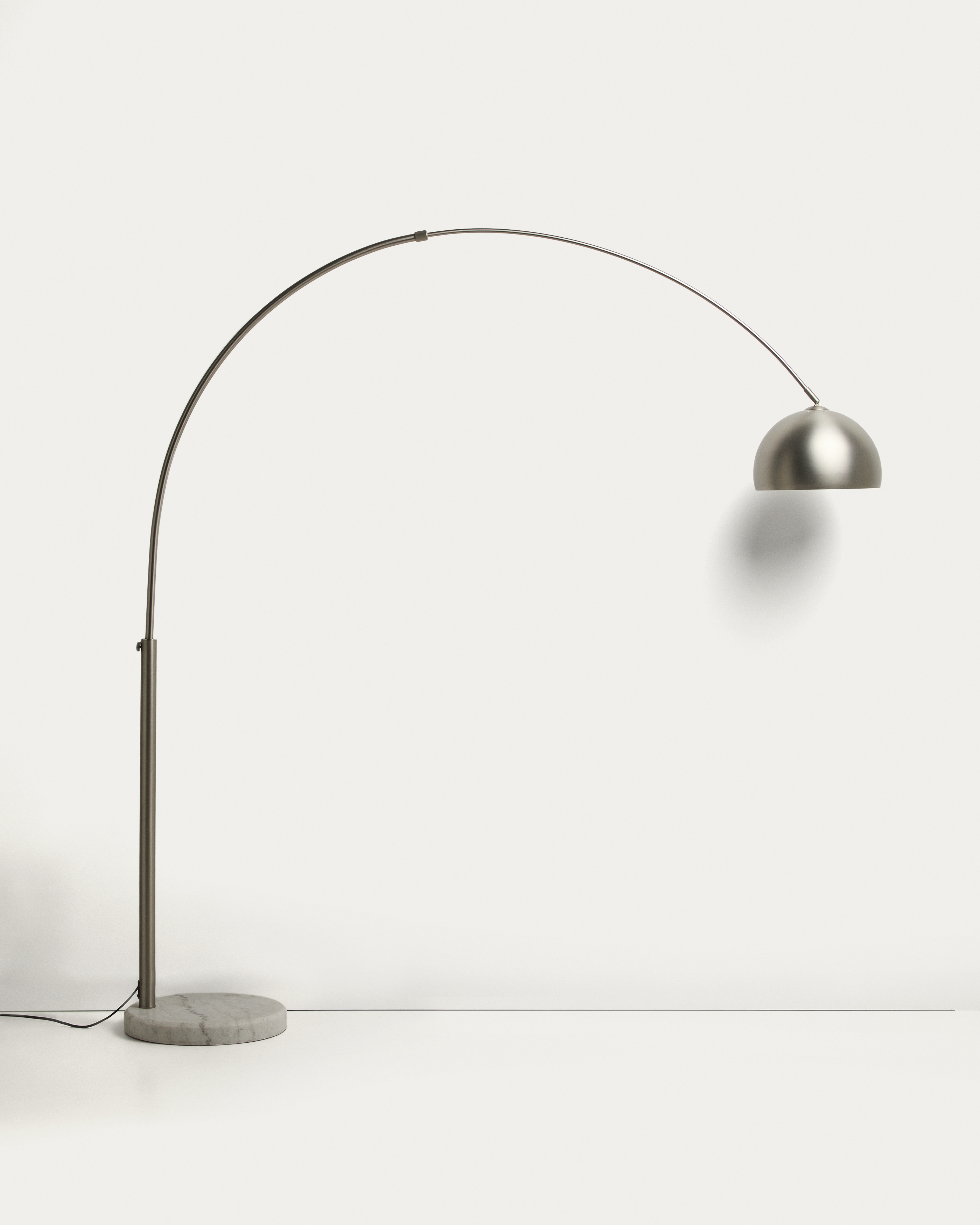 Напольная лампа Madali сочетает в себе баланс и характер в дизайне, который привносит спокойствие и ощущение уюта в пространство, идеально подходящее для чтения или отдыха. Ее стальная конструкция образует изящную арку, приглашающую насладиться светом. Основание, вырезанное из мрамора, обеспечивает контраст и устойчивость. Каждая деталь разработана с учетом ритма повседневной жизни: регулируемая высота позволяет изменять положение лампы в зависимости от ситуации, а регулируемый абажур направляет свет.