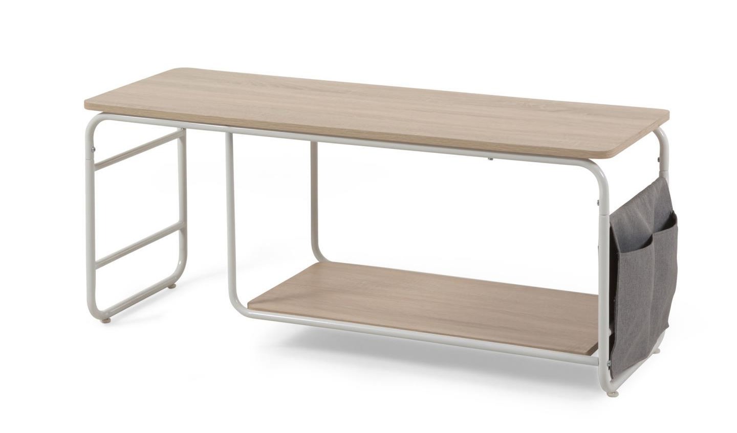 Меламиновая тумба под телевизор с меламиновой отделкой под дерево. Металлическая конструкция окрашена в белый цвет. Имеются тканевые карманы. Идеально подходит для максимально эффективного использования пространства и добавления стиля в вашу гостиную. Сочетайте этот предмет с остальной частью коллекции, чтобы завершить образ. Ширина 110 см — компактное решение для небольших гостиных, спален или городских квартир, где каждый сантиметр на счету.