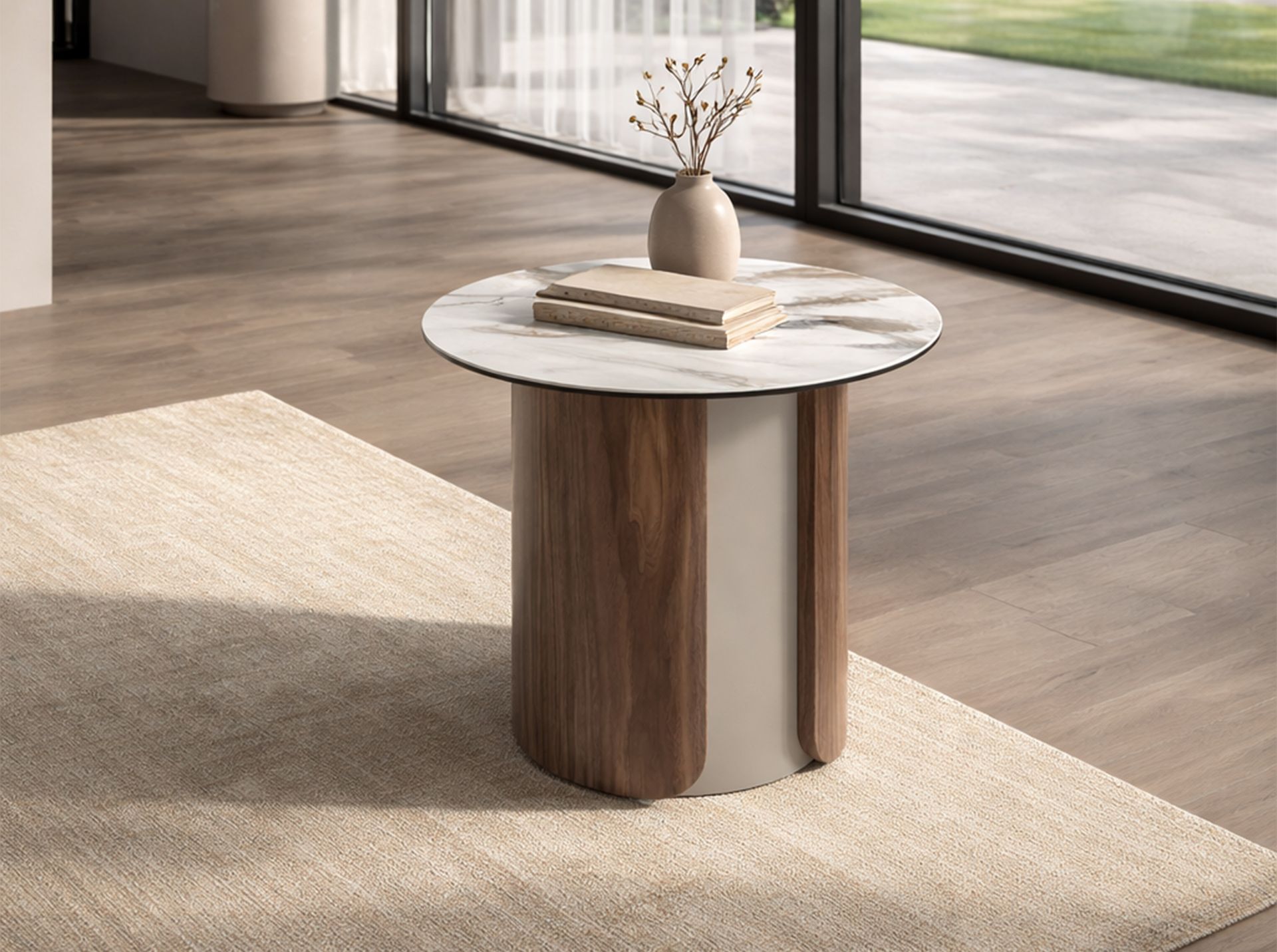 Приставной столик 2166 из керамики с мраморной отделкой, стали и ореха