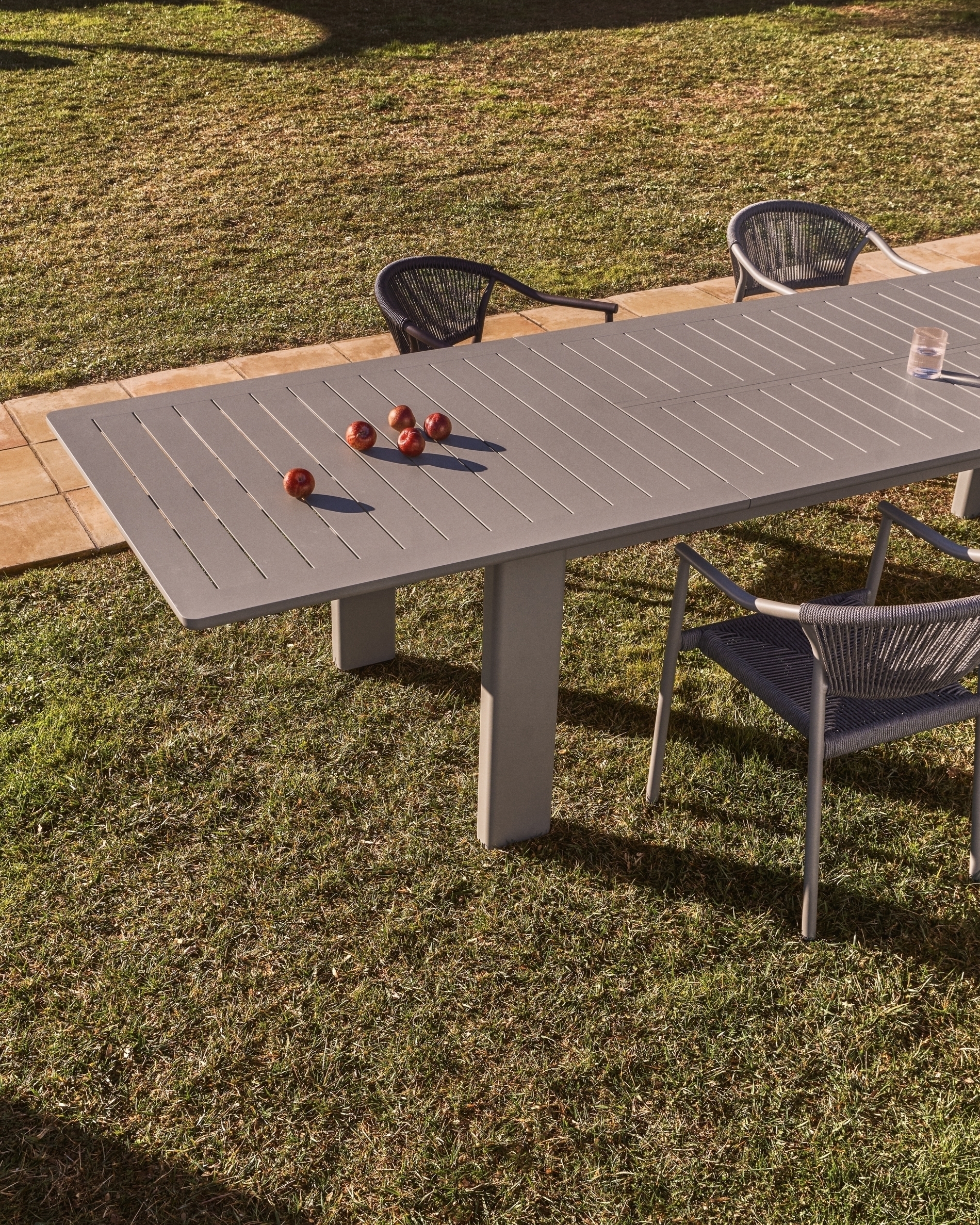 Раздвижной стол Livorno выделяется сбалансированным сочетанием дизайна и функциональности. Изготовленный из алюминия, он сочетает в себе легкость и устойчивость к ржавчине, коррозии и воздействию солнечных лучей. Ножки с отделкой под натуральное дерево придают столу визуальную теплоту, не жертвуя при этом прочностью и простотой в уходе, присущими алюминию. Система раздвижения имеет легко открывающийся механизм типа «бабочка» и включает в себя скрытую выдвижную секцию внутри стола, позволяющую регулировать его размер в зависимости от пространства.