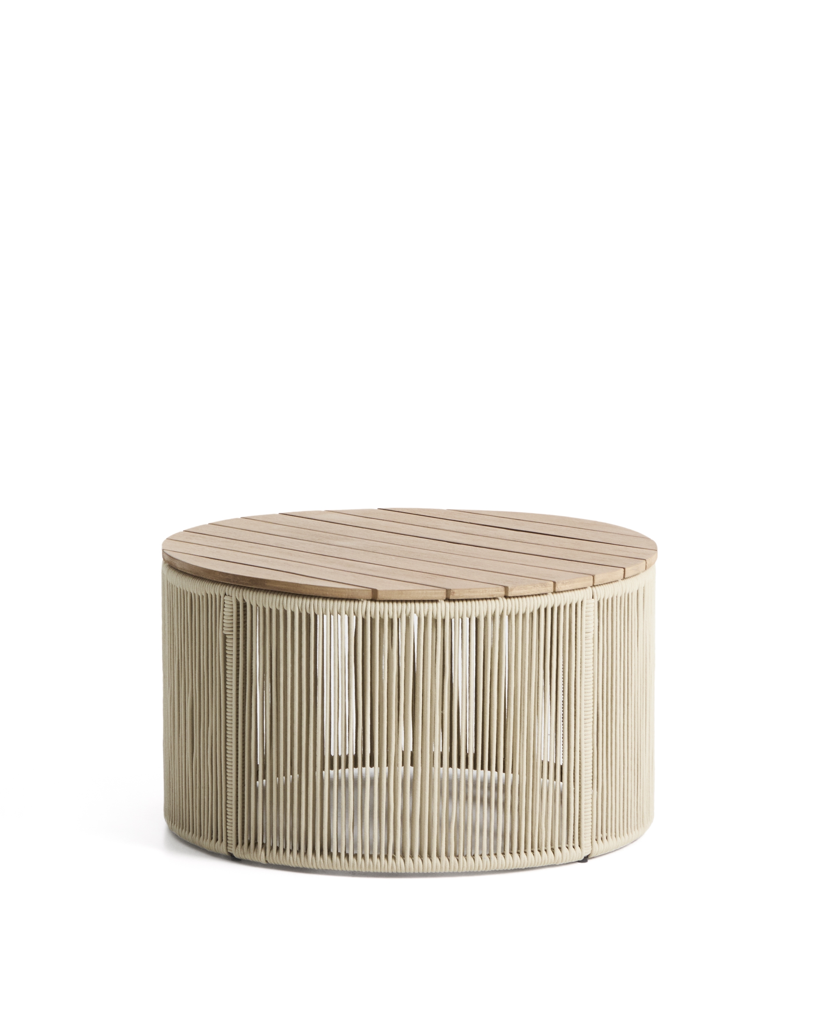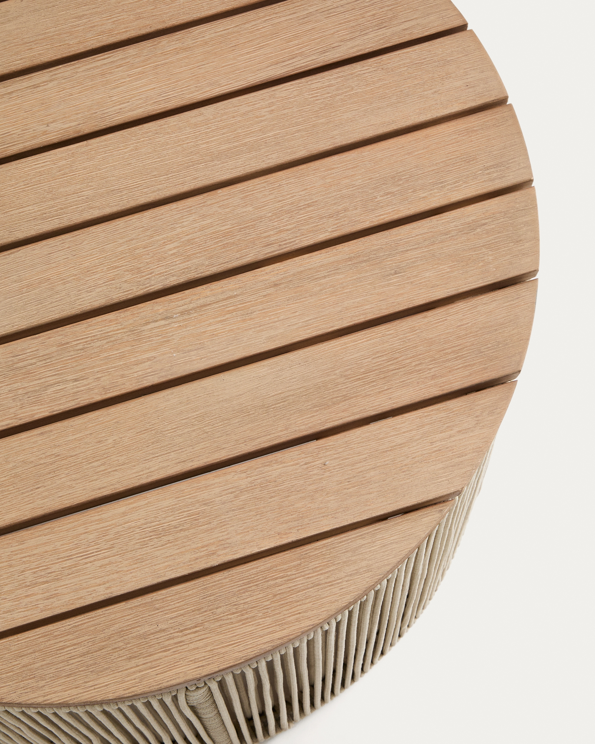 Уличчный столик Dandara из стали, веревки цвета экрю и массива акации Ø70 см