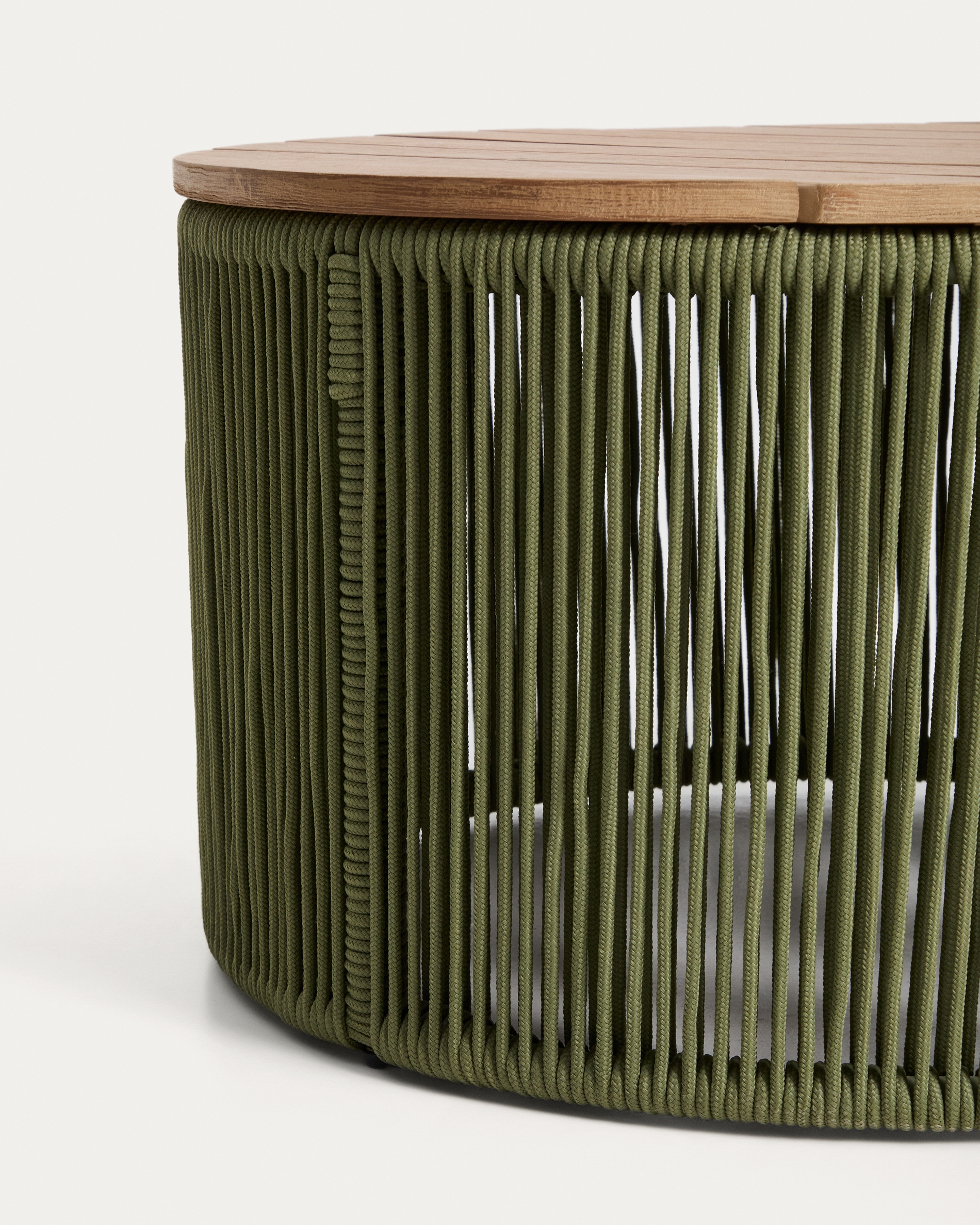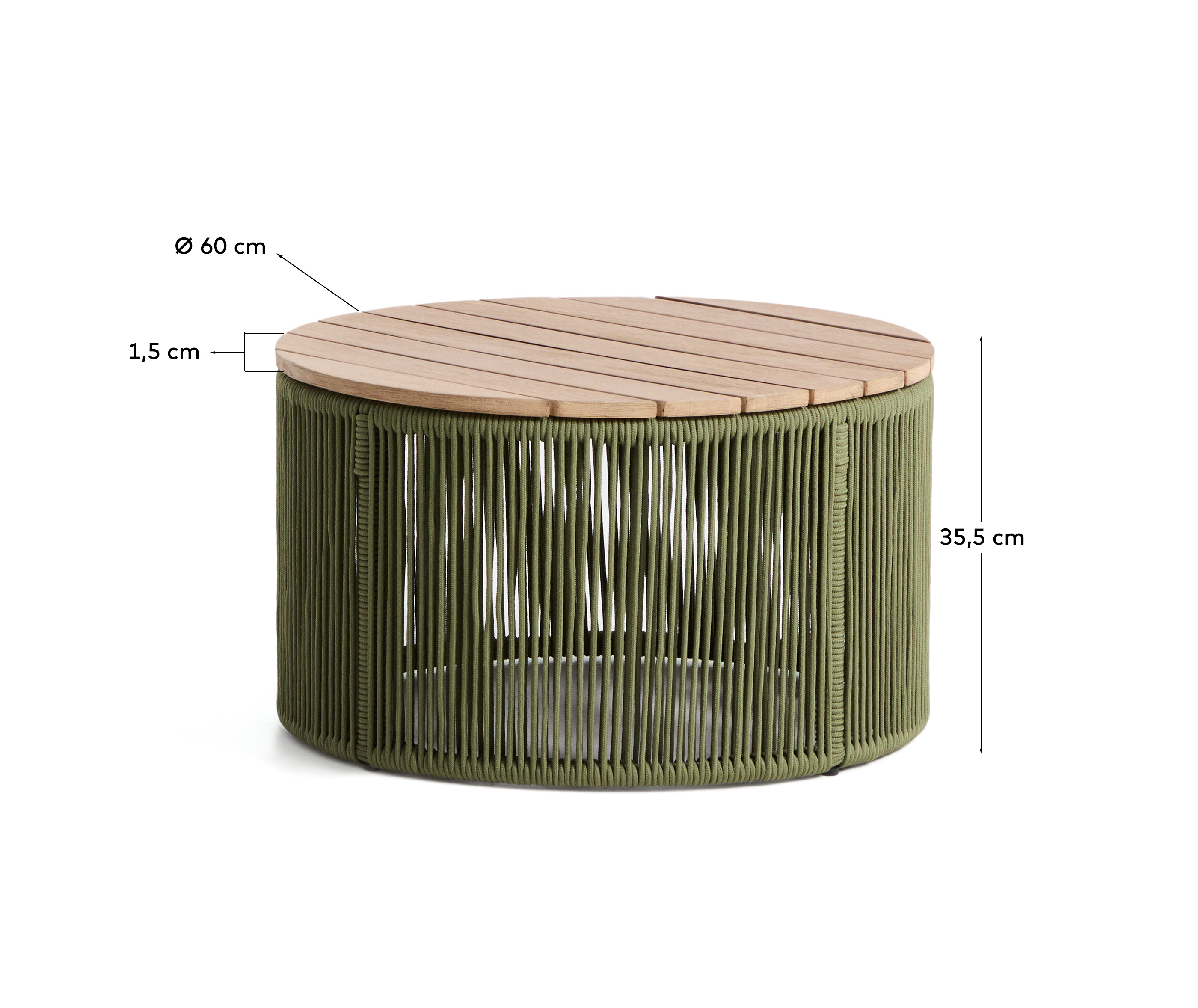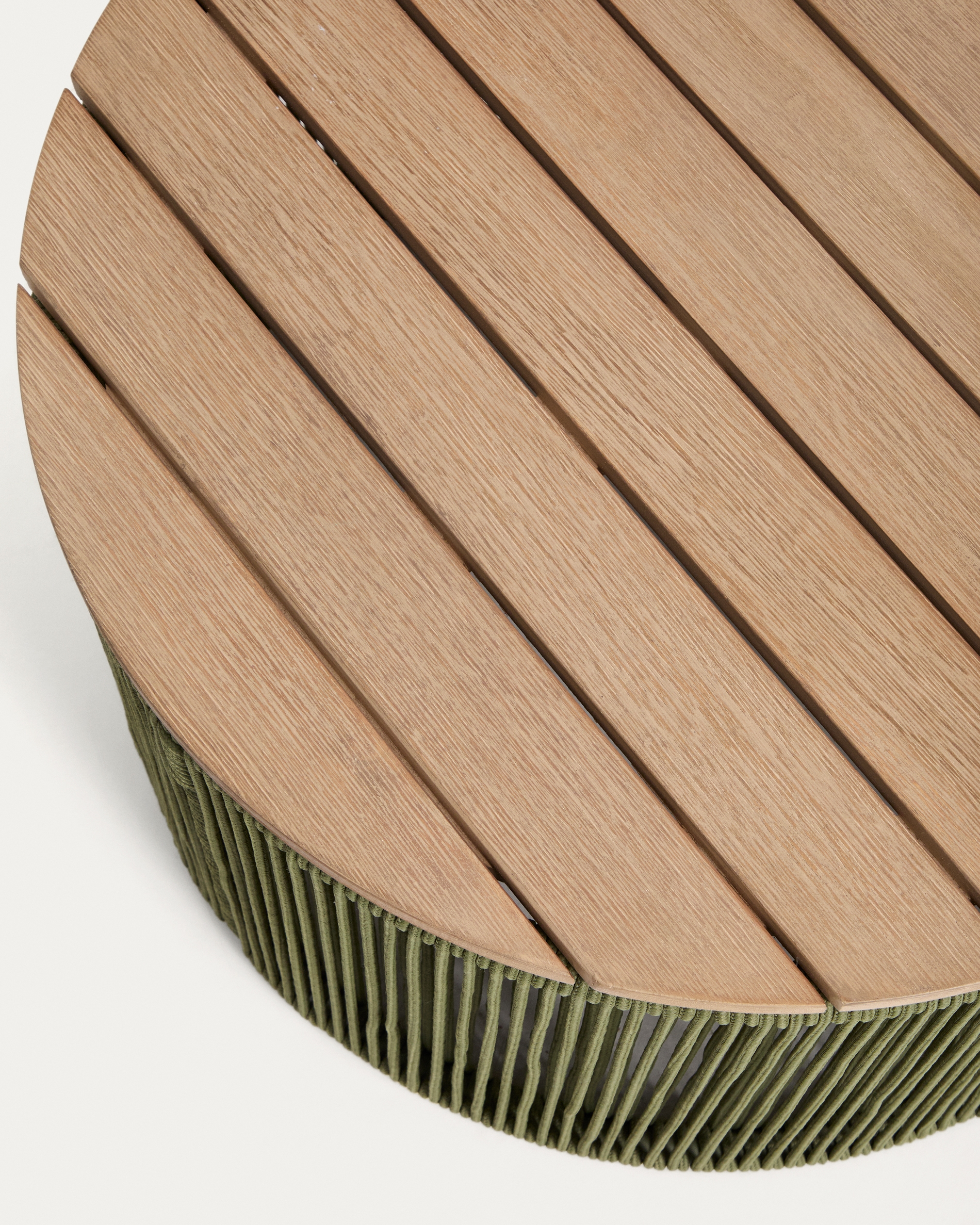 Уличчный столик Dandara из стали, зеленой веревки и массива акации Ø60 см