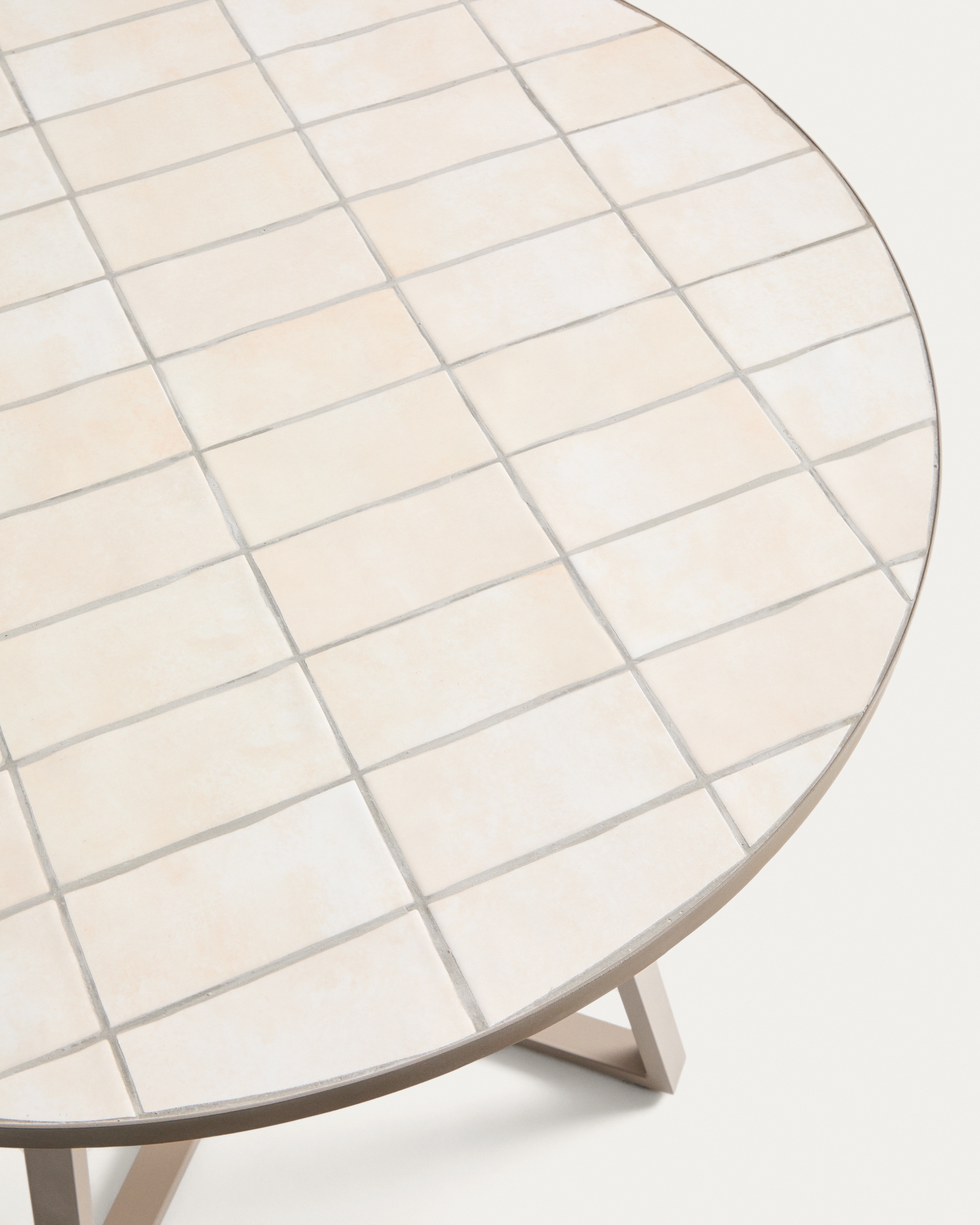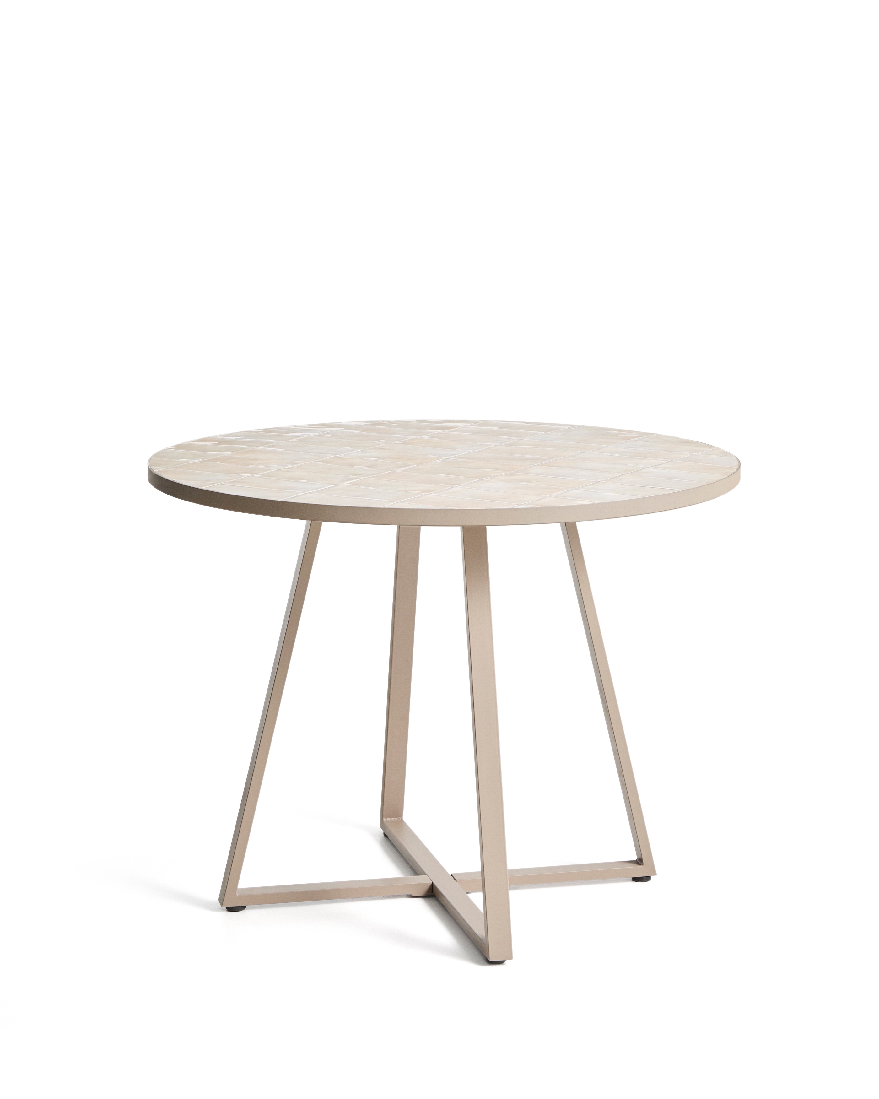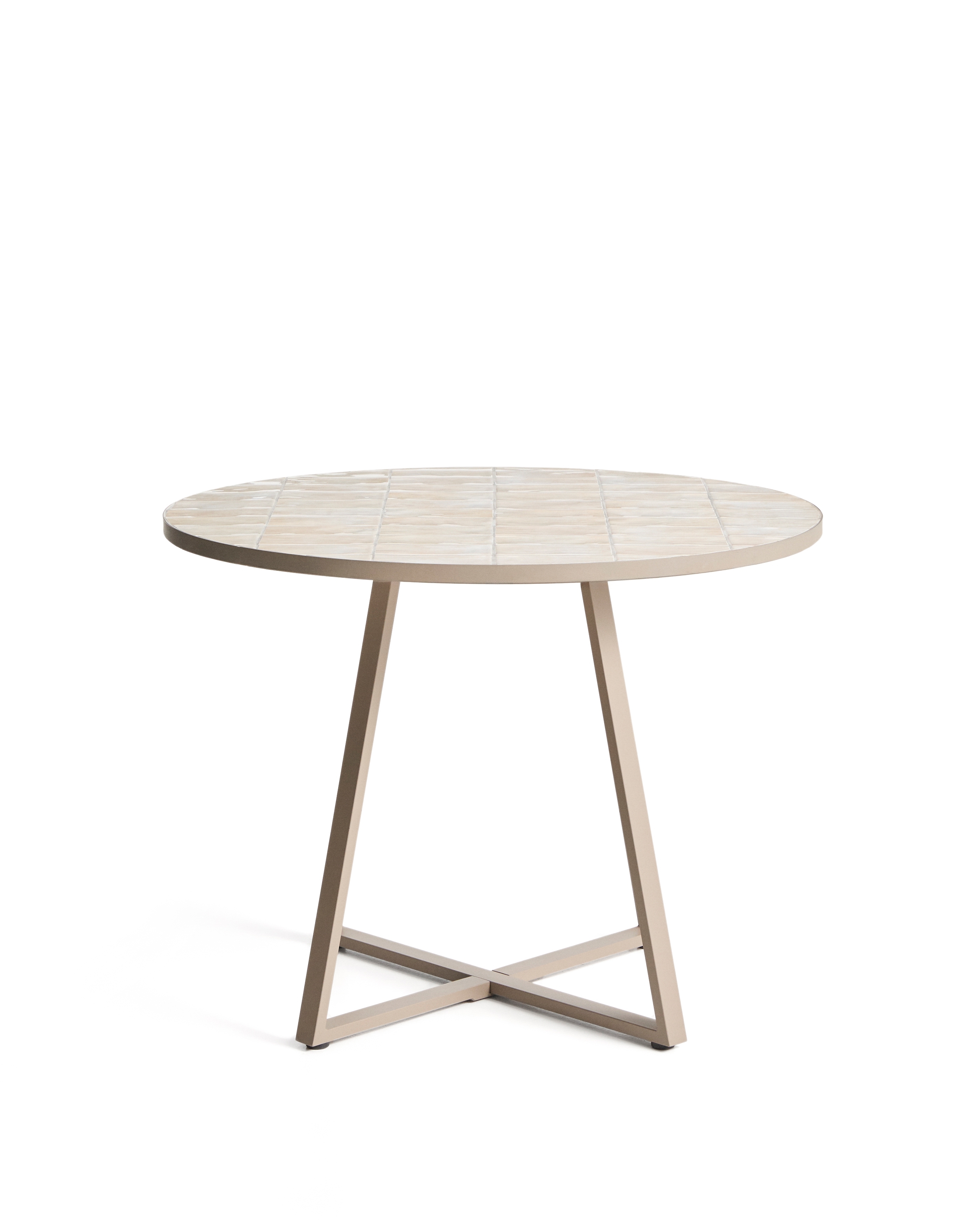 Уличный стол Tella из оцинкованной стали бежевого цвета с бежевой плиткой, диаметр 120 см