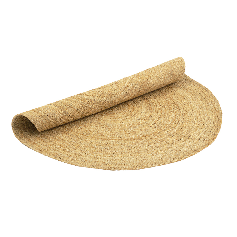 Ковер из джута круглый базовый из коллекции Ethnic – отличное сочетание традиционного дизайна и натуральных материалов. Естественный оттенок и отсутствие дополнительных элементов в виде бахромы и сложных узоров делают это напольное покрытие универсальным. Такой ковер прекрасно вписывается в современные интерьеры и эклектичные пространства, создавая ощущение уюта и тепла домашнего очага. Джутовые волокна отличаются высокой прочностью, могут выдерживать большие нагрузки и сохраняют первоначальную форму на протяжении долгого времени. Это гарантирует готовому изделию практичность и долговечность. Материал не вызывает аллергических реакций, не накапливает статическое электричество и легко очищается. Диаметр: 120 см. Плотность: 1900 г/м2. Подложка: нет. ! Стирка запрещена ! Гладить запрещено ! Барабанная сушка запрещена ! Не отбеливать ! Сухая чистка запрещена ! Допускается ручная чистка пятен Рекомендуем незамедлительно удалять любые загрязнения. Для этого используйте бумажные салфетки или ткань с мыльным раствором воды. Регулярно чистите ковер пылесосом. Не применяйте турбощетку или щетку с жестким ворсом. Если появилась зацепка, не вытягивайте нити из ковра. Для их удаления воспользуйтесь ножницами. Стелите ковер на подложку, чтобы продлить срок его службы и защитить напольное покрытие. Небольшое количество ворса может выпадать – это нормально для ковров из натуральных материалов. Обращаем внимание, что острые предметы, открытый огонь, теплая поверхность и чрезмерная влажность могут испортить внешний вид и негативно повлиять на качественные характеристики изделия. Небольшая разница в цвете и фактуре джута в разных частях ковра делает каждое изделие уникальным. У новых напольных покрытий может присутствовать естественный запах, он абсолютно безопасен и при частом проветривании быстро исчезает. После вскрытия упаковки ковер в течение некоторого времени может сохранять элементы деформации вследствие долгого нахождения в скрученном виде, но уже через 1-2 недели он полностью выпрямится. Ковер может выцветать под воздействием прямых солнечных лучей. Рекомендуем периодически менять расположение изделия, чтобы цвет менялся равномерно.