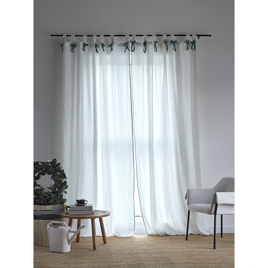 Штора из муслина с декором синего цвета из коллекции Essential поможет в создании уютного интерьера и благодаря нейтральной цветовой гамме станет прекрасным фоном для самых смелых дизайнерских решений. Такие занавески идеально подходят для украшения окон в спальне и гостиной – материал хорошо пропускает свет, при этом защищает от прямых солнечных лучей, обеспечивая в комнате комфортную атмосферу. Особенности и преимущества: - Штора из 100% муслина не накапливает статическое электричество, не притягивает пыль, легко стирается и быстро сохнет. - Материал является экологичным и гипоаллергенным, что способствует созданию в помещении здорового микроклимата. - Базовый текстиль отлично сочетается с предметами интерьера в любом стиле и цветовой гамме. - Декор в виде бантиков синего цвета привносит в дизайн интересный акцент и игривые нотки. - По верхнему краю шторы предусмотрены специальные петли для размещения на карнизе без использования дополнительного крепежа. Материал: 100% хлопок. Плотность: 200 г/м2. Размер: 150х290 см. ! Максимальная температура стирки 30° C ! Гладить запрещено ! Возможна барабанная сушка при низкой температуре ! Не отбеливать ! Сушить горизонтально