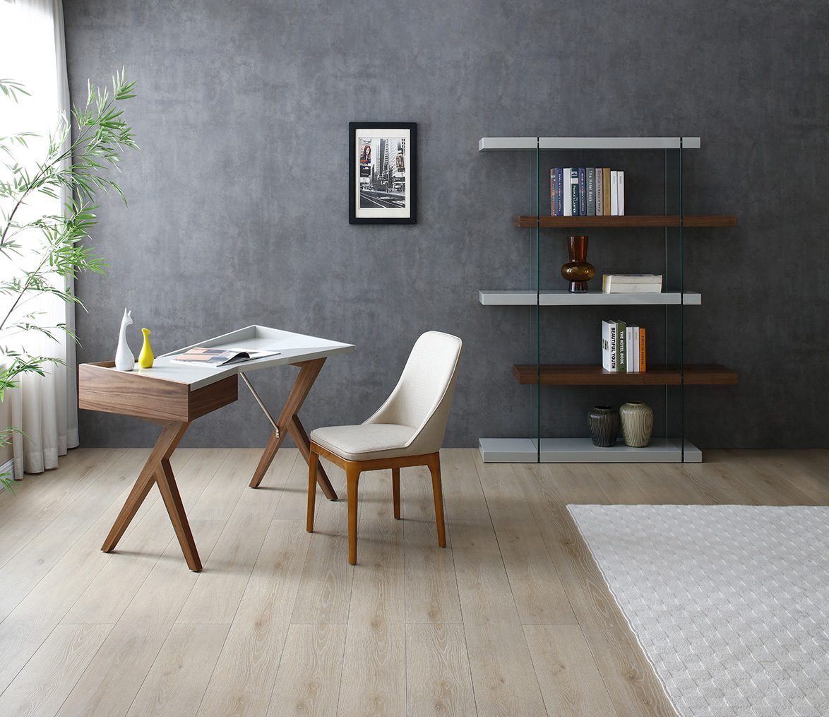 Письменный стол Bekker — это гармония природной основательности и светлой современной эстетики. Его столешница шириной 120 см и глубиной 60 см представляет собой искусно сбалансированную композицию из двух материалов. Cветлый, глянцевый элемент создаёт эффектный контраст с тёмным орехом, словно луч света, скользящий по благородной древесине. Глянец отражает окружающее пространство и добавляет интерьеру современного шика. Классическая глубина 60 см обеспечивает полноценный рабочий комфорт: здесь разместятся монитор, клавиатура, документы и настольная лампа. А увеличенная высота 80,5 см — особенность модели Bekker — дарит более вертикальную, эргономичную посадку, особенно ценную для людей высокого роста.