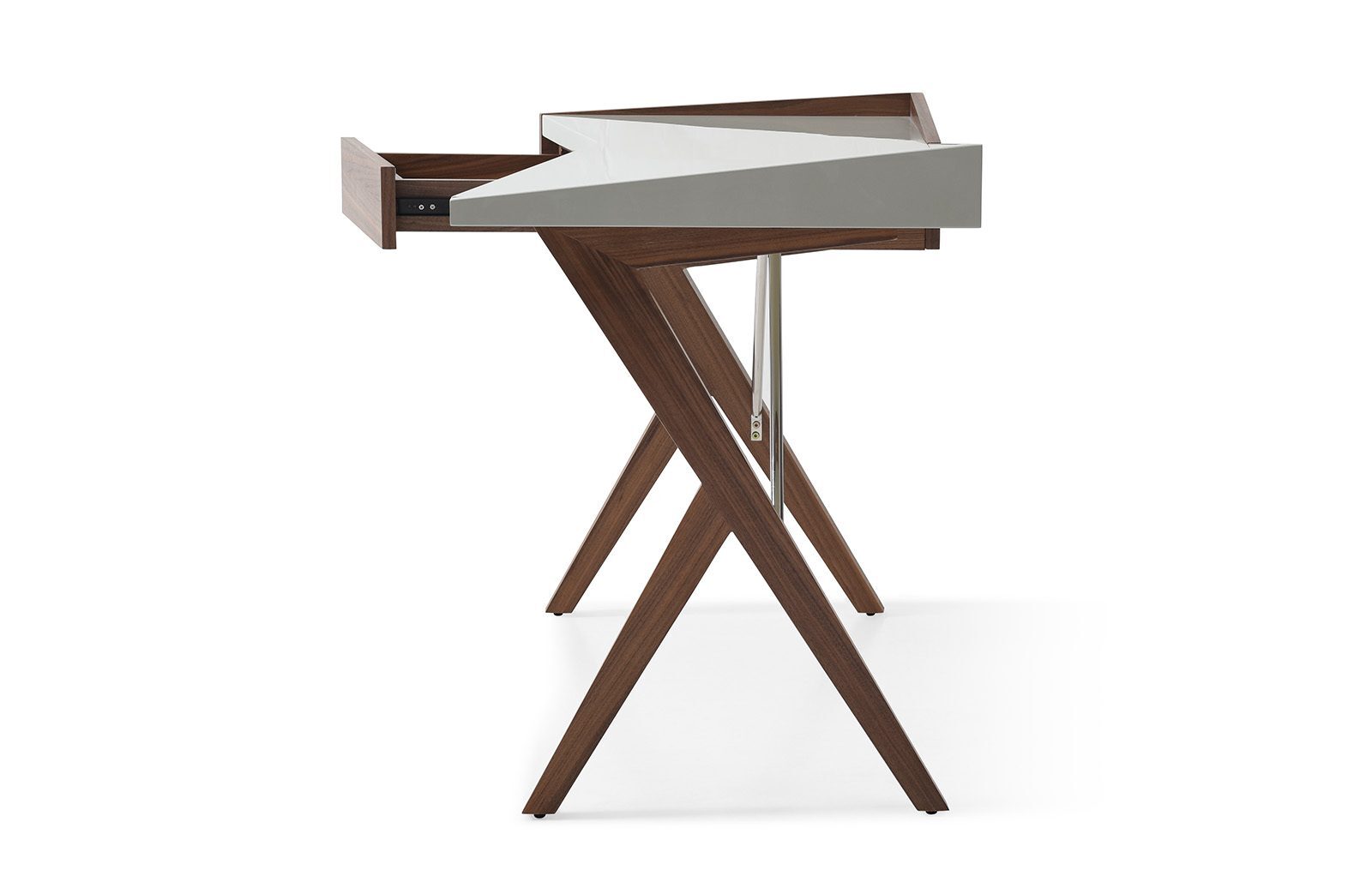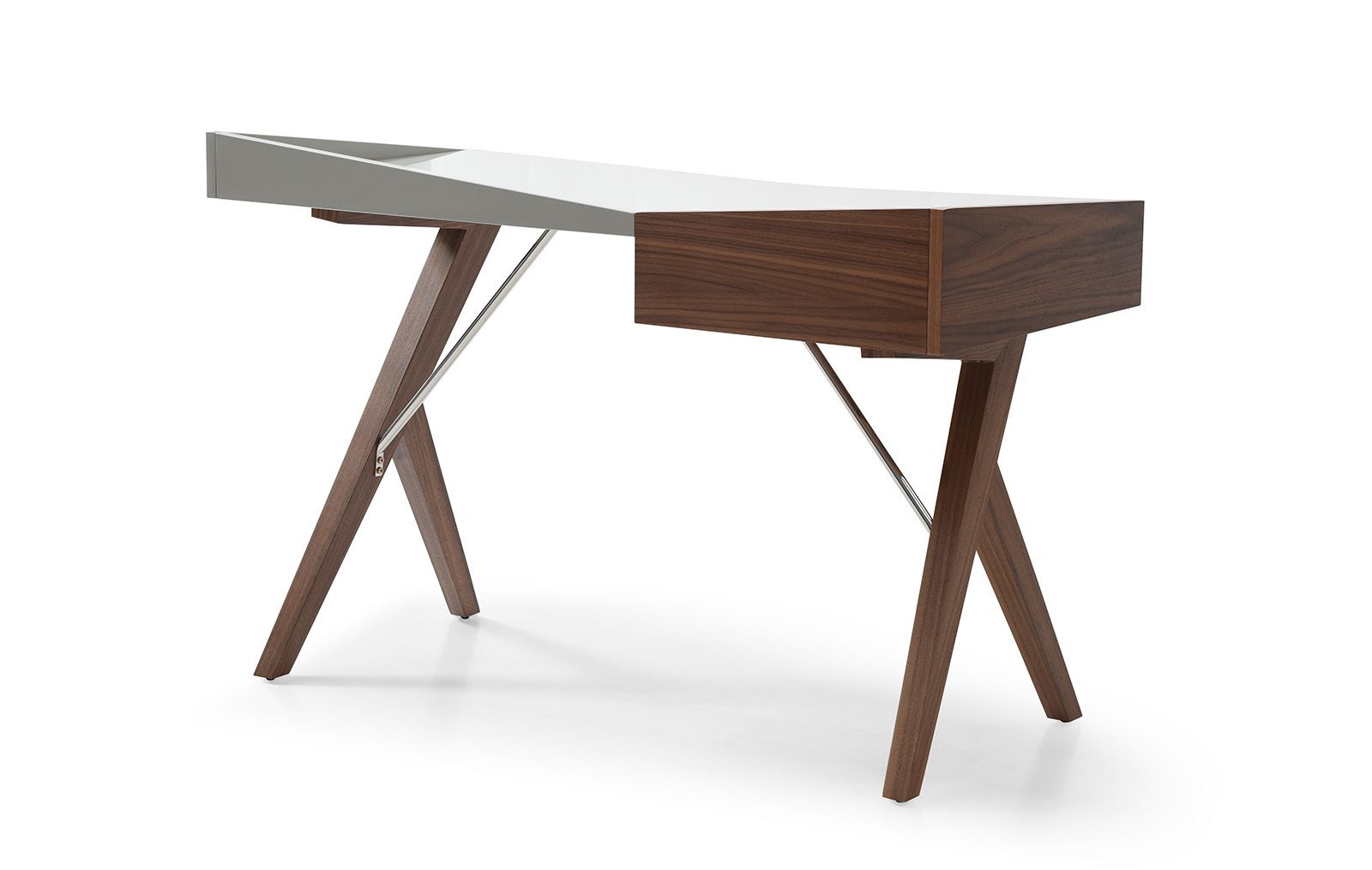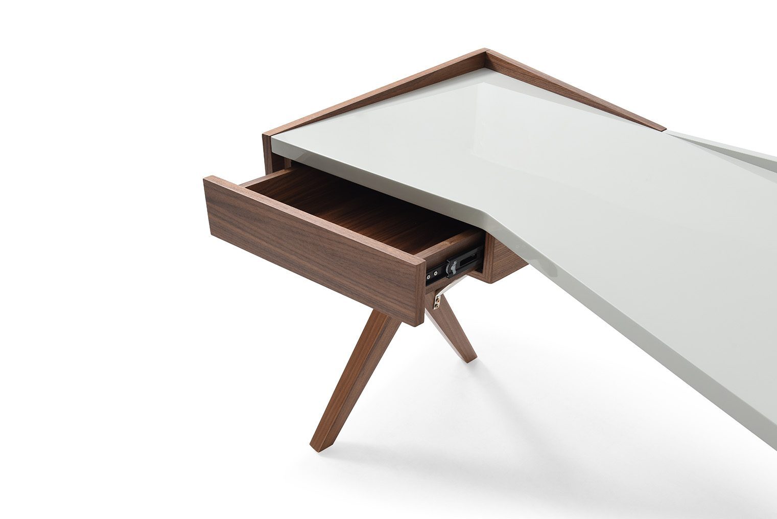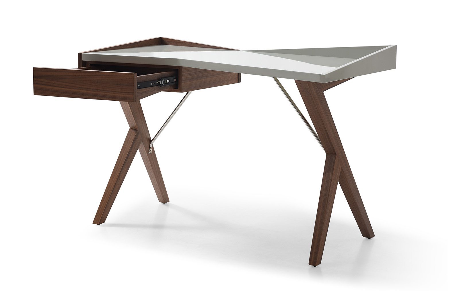 Письменный стол Bekker, 120×60 см, натуральный шпон ореха / бежевый глянец