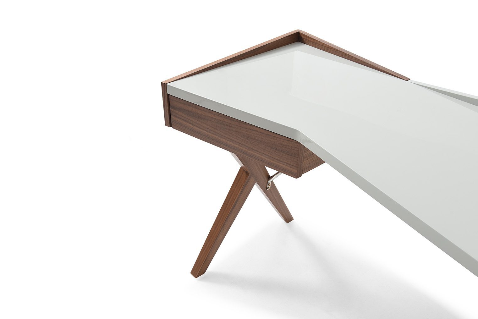 Особенности: Комбинированная столешница премиум-класса, натуральный шпон ценной породы дерева, контрастное глянцевое акцентирование.