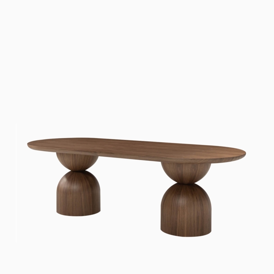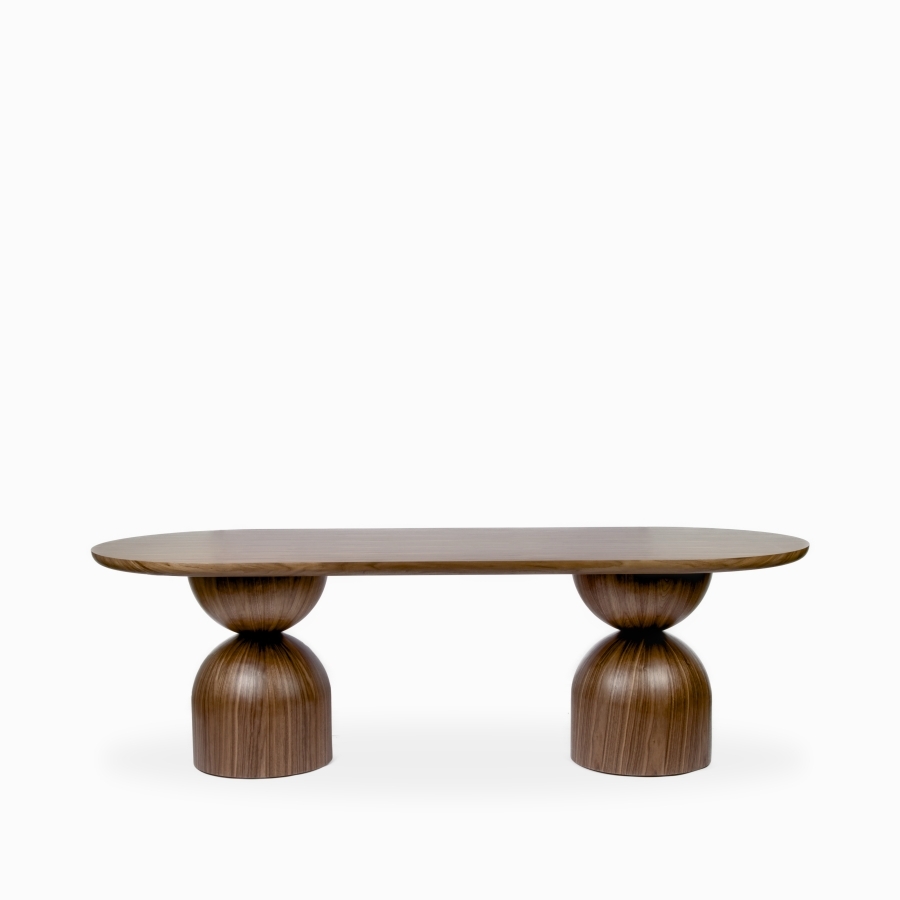Стол выполнен из высококачественного шпона грецкого ореха, что придаёт ему не только прочность, но и элегантный внешний вид. Ореховый шпон с его характерной текстурой и теплым оттенком добавляет нотки роскоши и натуральности в ваш интерьер.