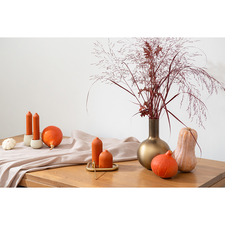Свеча декоративная оранжевого цвета из коллекции Edge в современном дизайне, вдохновленном русскими традициями, отлично подойдет для домашнего декора и создания уютной атмосферы в интерьере. Фактурные грани и округлая поверхность свечи отсылают нас к образу купола – простая и лаконичная форма, плавные изгибы и идеальные пропорции. Изготовлена вручную, без ароматизаторов, поэтому может использоваться для сервировки праздничного стола и повседневных ужинов. Свеча не коптит, так как выполнена из парафина с соевым и пчелиным воском, имеет фитиль из натурального хлопка. Время непрерывного горения – 30 часов. Размер свечи: 4,5х25,5 см. Упаковка: крафтовая коробка. Состав: 55% парафин 40% соевый воск 5% пчелиный воск ! Регулярно подрезать фитиль, чтобы его высота не превышала 6-8 мм. Благодаря этому пламя будет ярким и ровным. ! Не оставлять свечу на ветру или сквозняке – это может привести к неравномерному горению и, как следствие, – к образованию сильных подтеков. ! Зажигать свечу, предварительно расположив ее на подсвечнике, если она идет без специального стакана. ! Не оставлять горящую свечу без присмотра. ! Использовать вдали от легковоспламеняющихся материалов. ! Беречь от детей и домашних животных. Важно! Если свеча начала подтекать, огонь следует затушить и дать воску застыть, после чего можно будет зажечь ее повторно. В противном случае может образоваться сильный подтек, а свеча утратит красивый внешний вид и свои первоначальные качества.