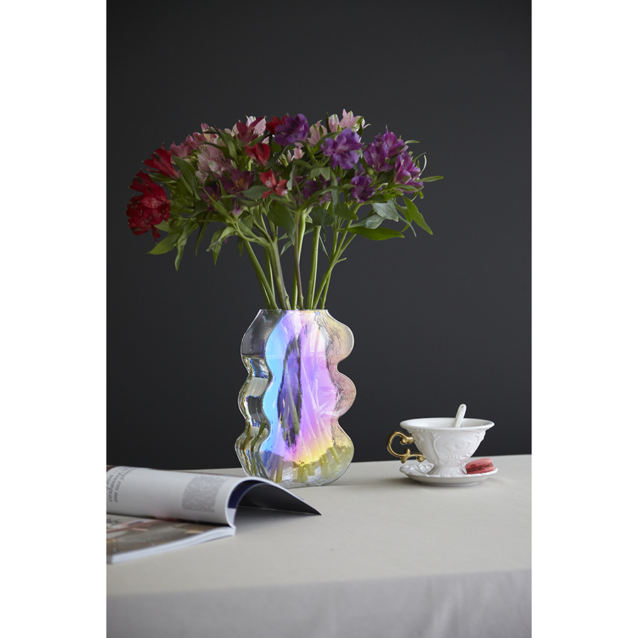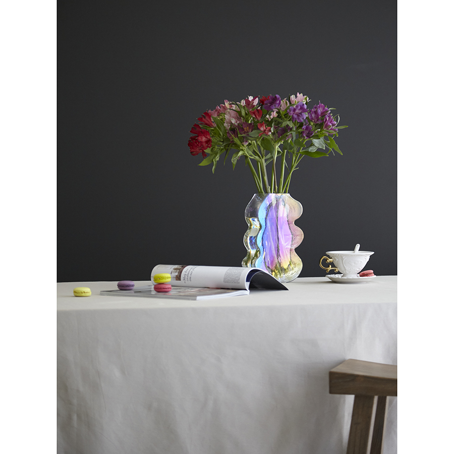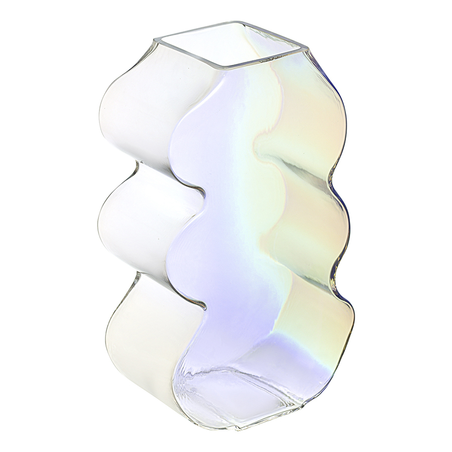 Ваза Wavy – стильный декор, способный оживить пространство за счет своей оригинальной формы. Волнообразный рельеф создает ощущение спокойствия, помогая создать в интерьере атмосферу гармонии и уюта. Ваза идеально подходит для свежесрезанных букетов и композиций из сухоцветов. Особенности и преимущества: - Стеклянная ваза привносит в интерьер ощущение легкости, чистоты и отлично сочетается с различными стилевыми решениями. - За счет необычной формы декор выделяется среди других предметов и может служит акцентным элементом. - Материал является экологичным, долговечным, легко очищается от загрязнений. Материал: стекло. Размеры: 15,5х9х25 см. Объем: 2 л. Цвет: перламутр. Рекомендуется мыть в теплой мыльной воде при помощи мягкой губки.