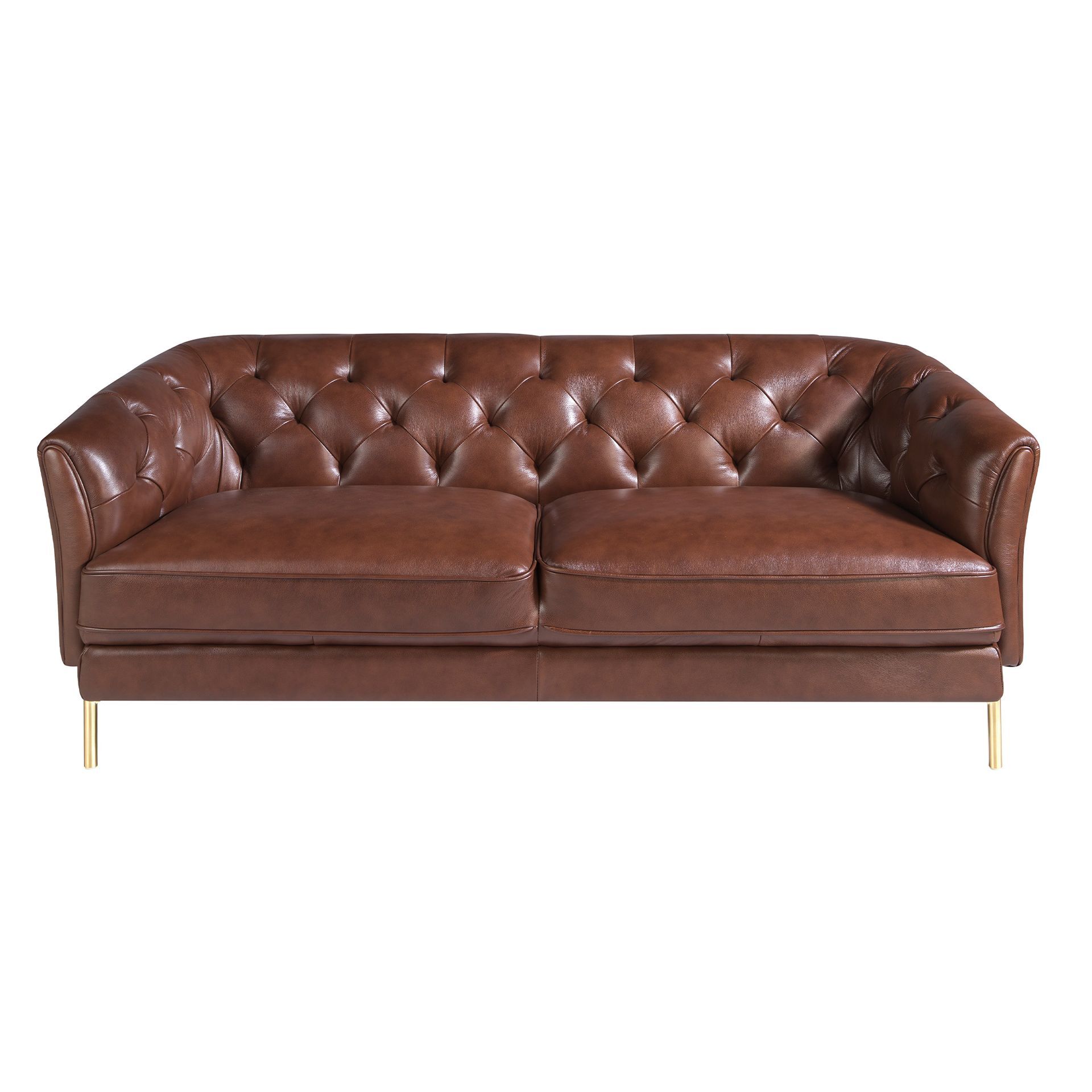 Диван 2-х местный 6139/KF106-2P-M1595 кожаный с золотистыми стальными ножками