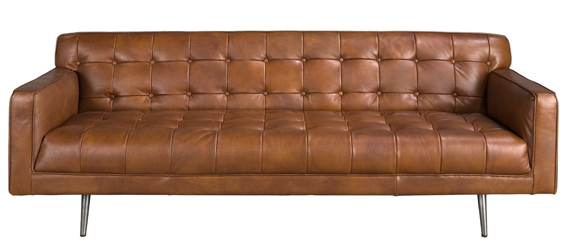 Трехместный диван Chester современного дизайна. Обивка из темно-коричневой кожи. Ножки из темной нержавеющей стали. Срок поставки — 60-70 дней.