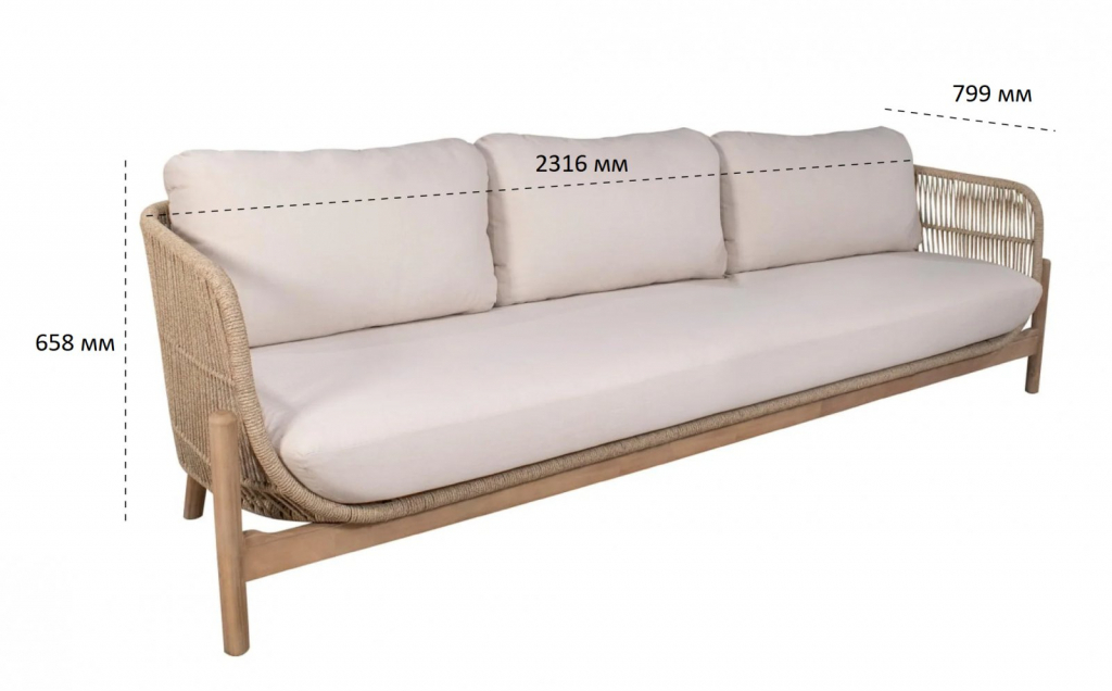 Диван деревянный плетеный трехместный Talara - купить по цене 121 850 руб в интернет-магазине StoreForHome.ru