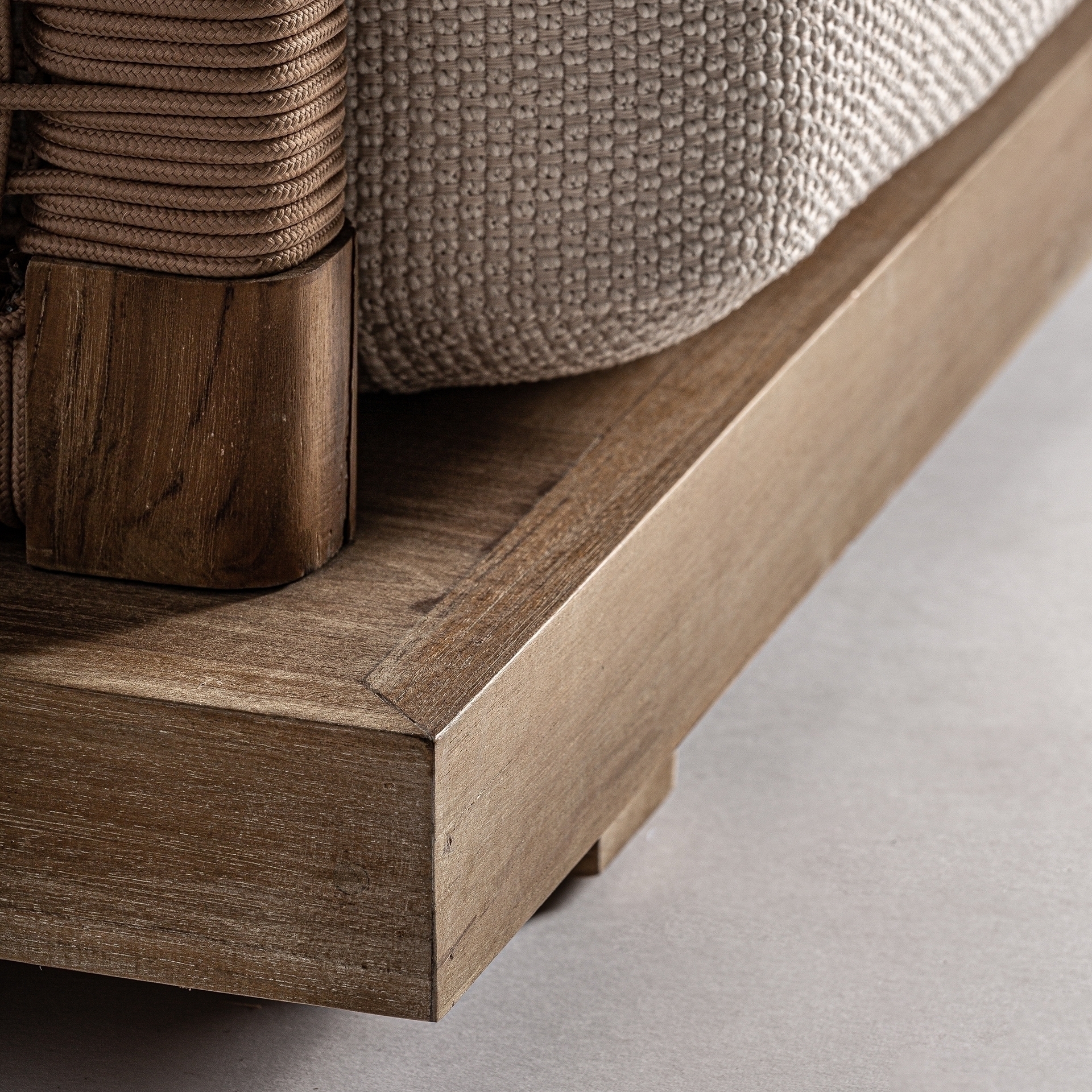 Диван Trena, коричнево-бежевый, стиль бохо. Изготовлен из переработанного тикового дерева в сочетании с переработанным полипропиленом и пеной. Изделие съемное, чехол съемный.