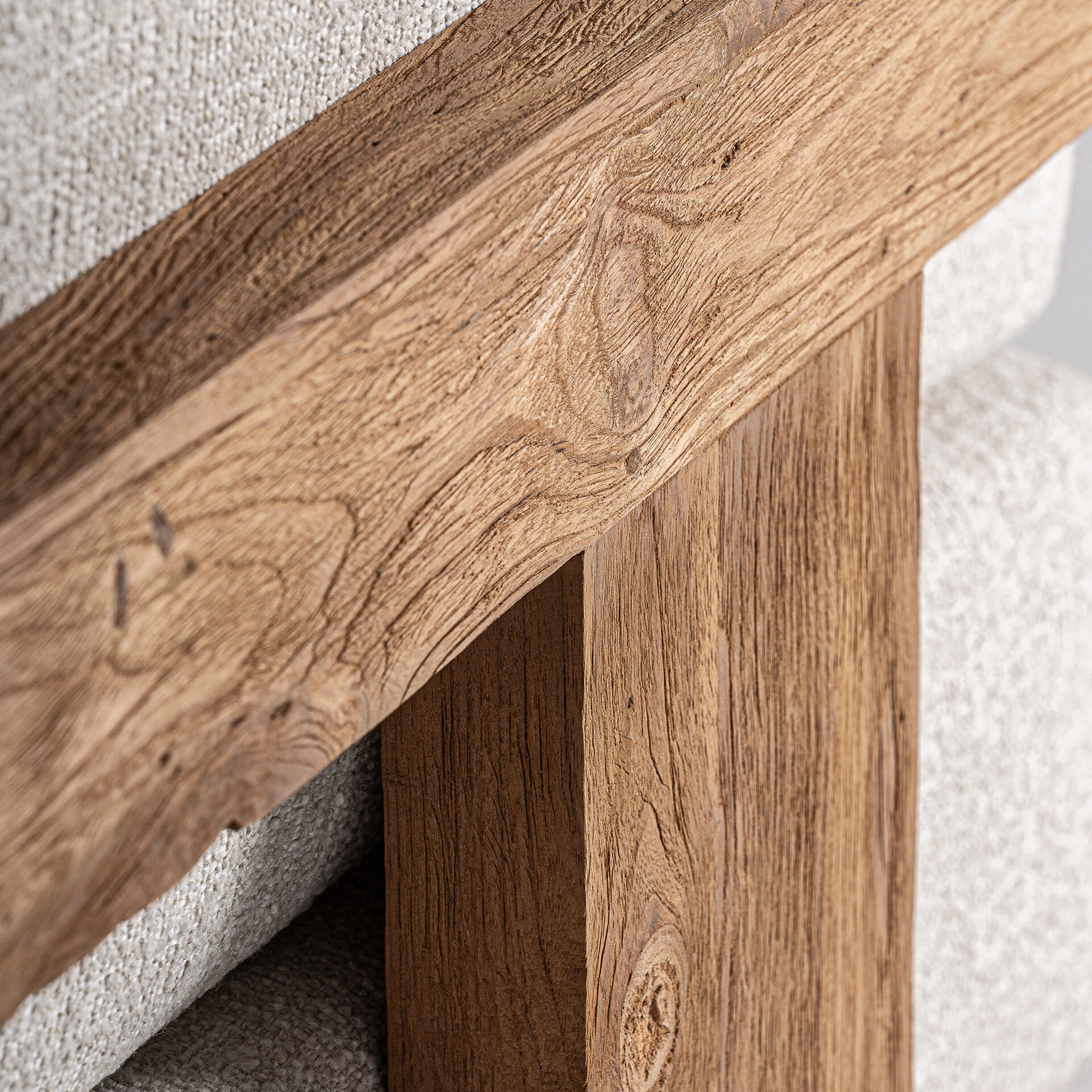 Кресло Testa в колониальном стиле, изготовлено из коричневого переработанного тикового дерева в сочетании с бежевым переработанным полипропиленом и пеной. Съемный чехол.