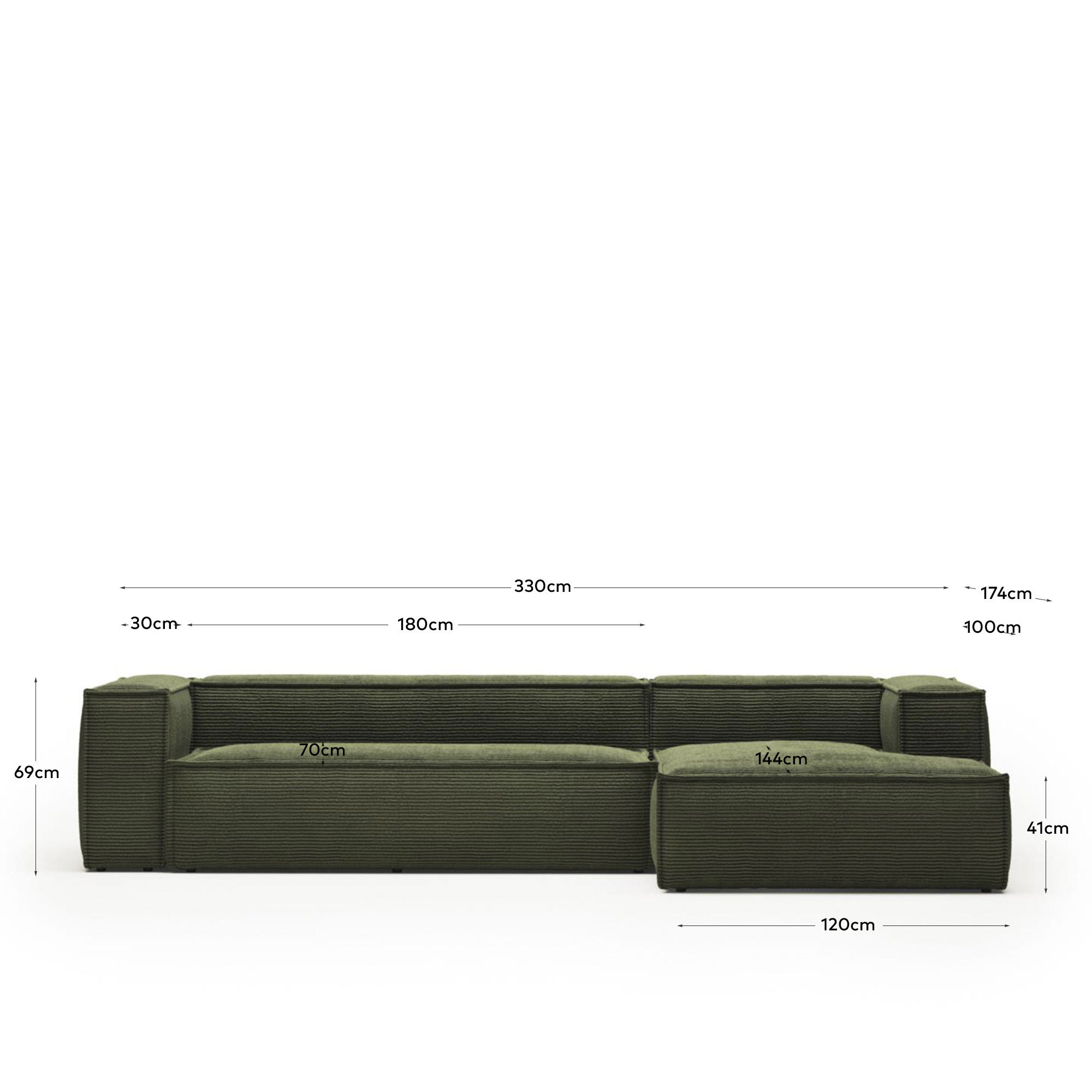 Диван трехместный с вельветовым шезлонгом. Этот диван с просторными пропорциями и стильным дизайном - идеальное место для отдыха и придаст стиль вашей гостиной. То, что находится внутри, тоже имеет значение. Вот почему древесина сосны, используемая для внутренней конструкции этого дивана, поступает из экологически чистых лесов с контролируемой вырубкой.