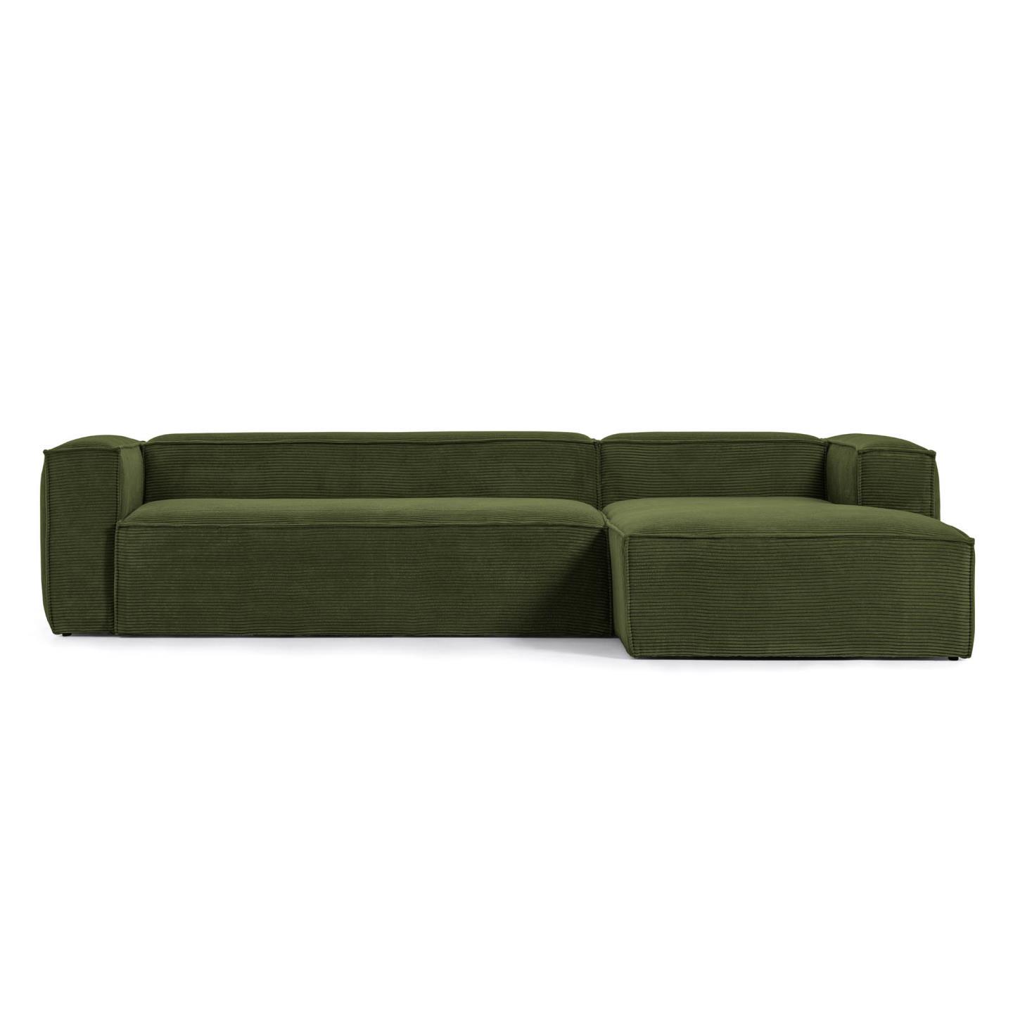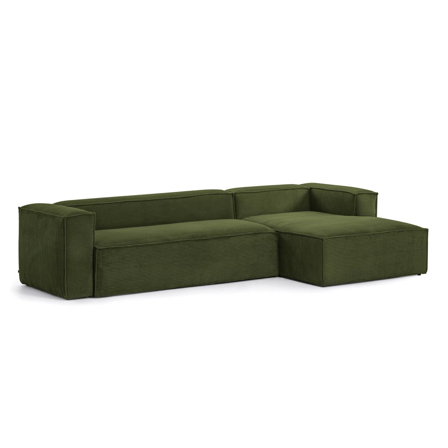 3-х местный диван Blok с правым шезлонгом в зеленом толстом вельвете 330 см